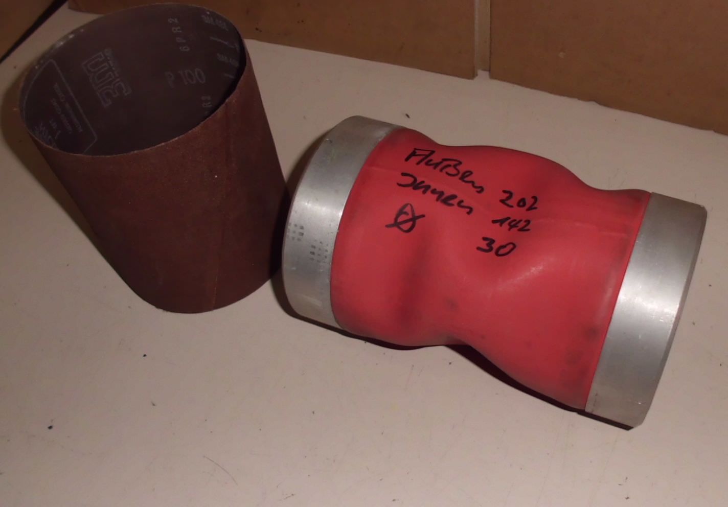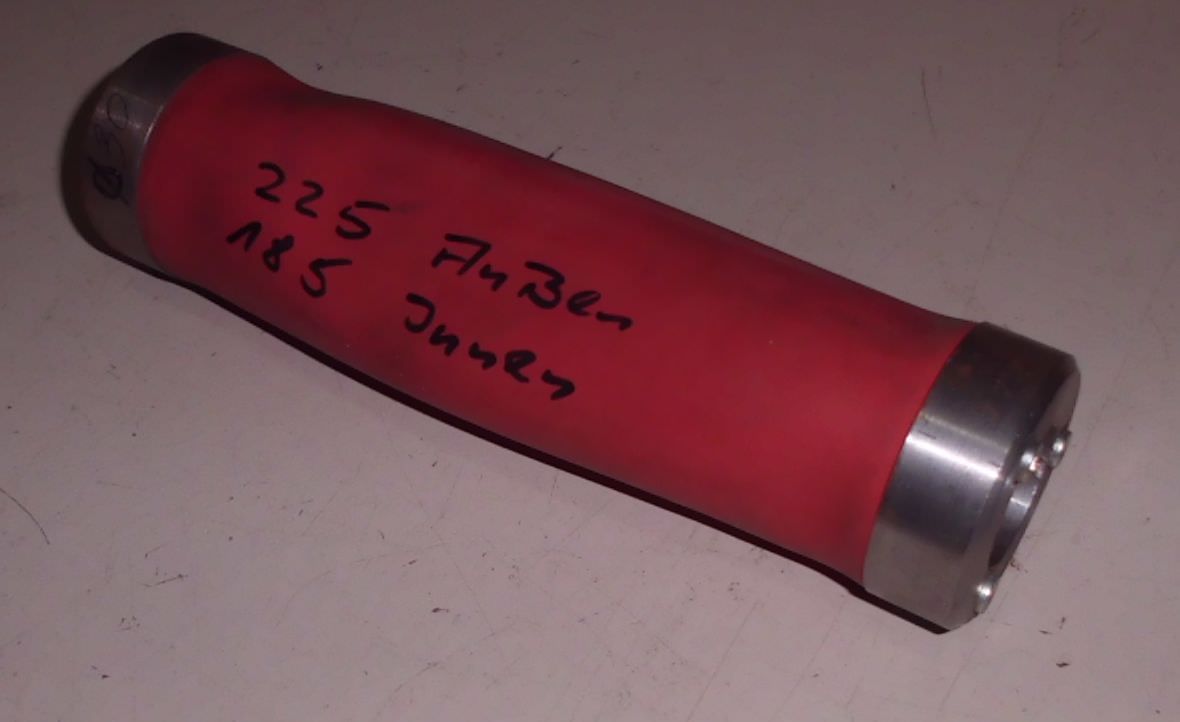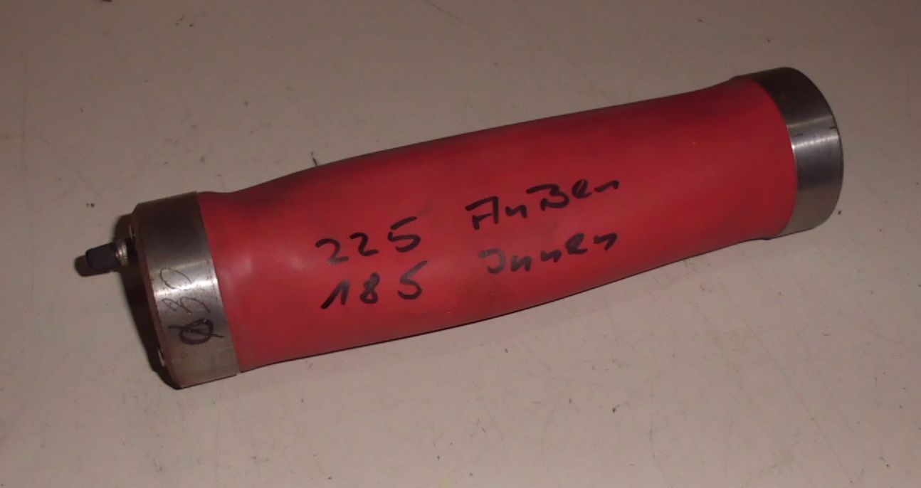 Grinding drum (rubber air drum) Original product from KED, (Kurt Ehemann) -Condition: unused -Type: G 6 x 22.5 -consisting of: base body, rubber hose, air valve, 2 clamping caps for rubber hose -Diameter: 60 mm -Grinding length: 200 mm -Length of base body: 225 mm -Holding bore: 30 mm -Number: 14 available Price: per piece -Available: on request in other sizes: e.g. diameters 40 mm, 60 mm, 75 mm, 100 mm, 125 mm, 150 mm, 175 mm, 200 mm, 250 mm, 300 mm e.g. grinding length 100mm, 150mm, 200mm, 250mm, 300mm, 400mm, 500mm Also available as brush grinding elements. Furthermore, we also carry general husband spare parts. Price of grinding drums is shown in the attached PDF file.