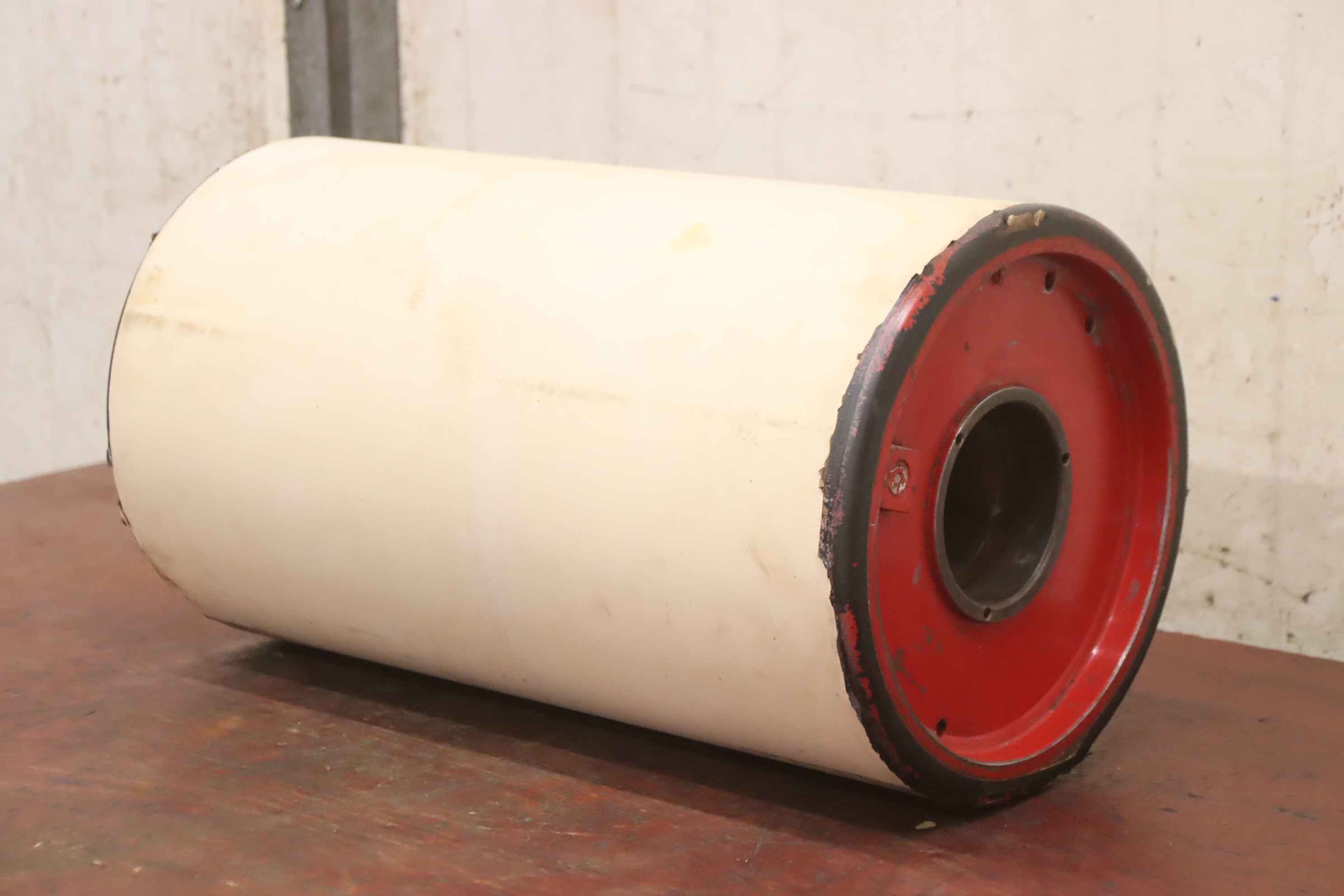 grinding drum, deflection drum, belt sander, belt grinder, drum sander, drum sander, conveyor belt rollers, transport rollers, replacement rollers, conveyor belt, roller conveyor, support rollers -Manufacturer: KED Kurt Ehemann, grinding drum drum width 200 mm -Drum: Ø 150 mm -Hole: Ø 30 x 200 mm -Number: 6x drums available -Price: per piece -Dimensions: Ø 150 x 200 mm -Weight: 8.0 kg/piece