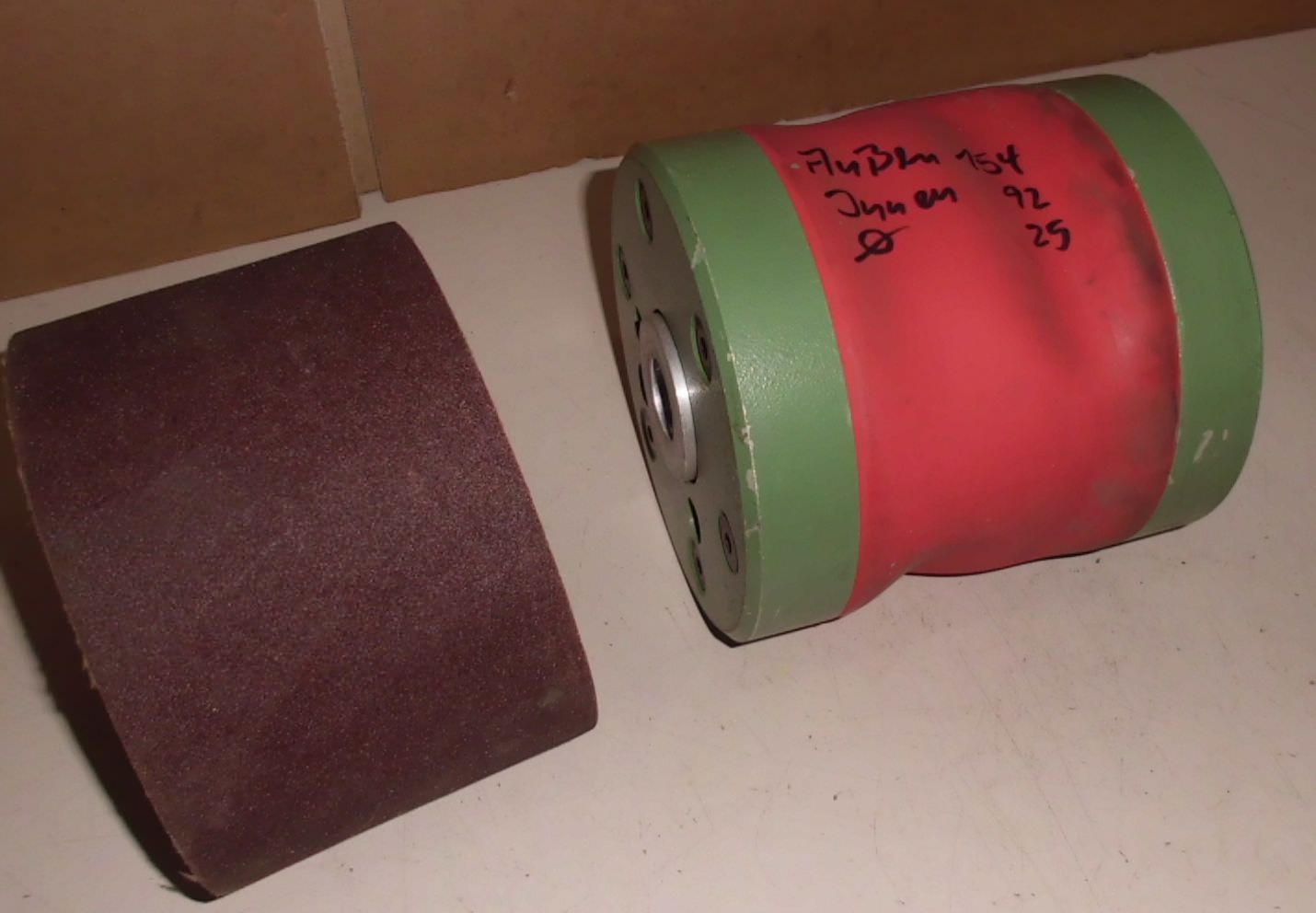 grinding drum, deflection drum, belt sander, belt grinder, drum sander, drum sander, conveyor belt rollers, transport rollers, replacement rollers, conveyor belt, roller conveyor, support rollers -Manufacturer: KED Kurt Ehemann, grinding drum drum width 200 mm -Drum: Ø 150 mm -Hole: Ø 25 x 200 mm -Number: 6x drums available -Price: per piece -Dimensions: Ø 150 x 200 mm -Weight: 6.8 kg/piece