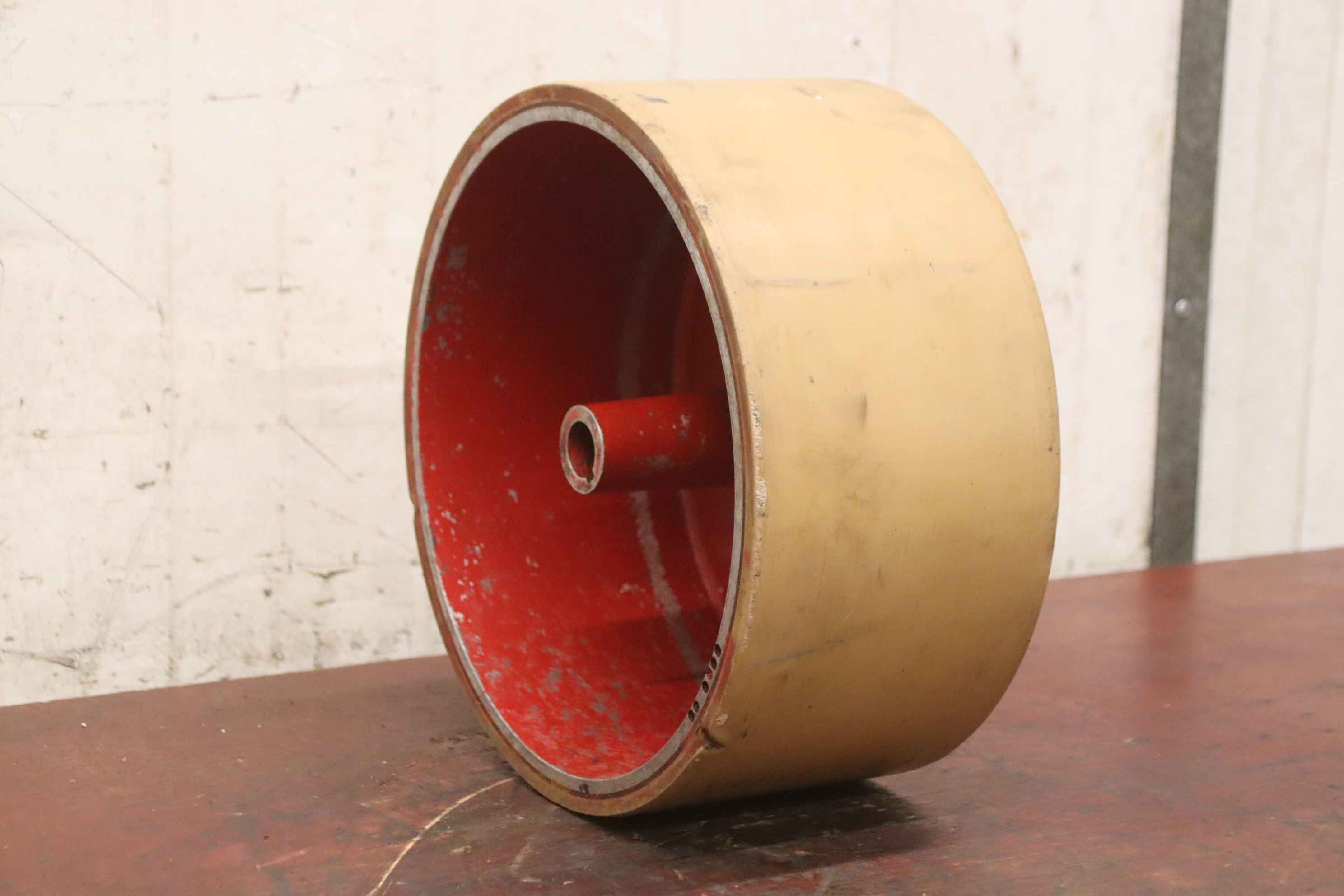 Grinding drum, deflection drum, belt sander, belt sander, drum sander, drum grinding machine, conveyor belt rollers, transport rollers, replacement rollers, conveyor belt, roller conveyor, carrying rollers -Manufacturer: KED Kurt Ehemann, grinding drum, drum width 150 mm -Drum: Ø 120 mm -Hole: Ø 25 x 150 mm -Quantity: 1 drum available -Dimensions: Ø 120 x 150 mm -Weight: 4.1 kg