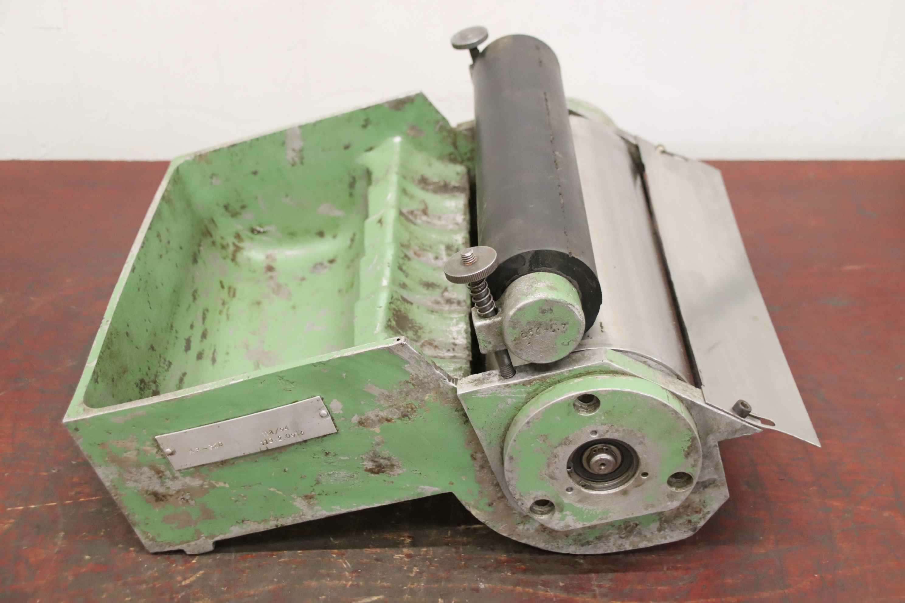 Magnetic roller, magnetic roller, magnetic separator, cooling water skimmer -Magnetic roller: Magnetic separator with rubber roller -Magnetic roll: Ø 130 x 310 mm -Rubber roller: Ø 68 x 310 mm -Dimensions total: 440/400/H240 mm -Weight: 26 kg