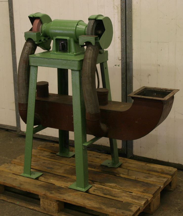 Grinding machine, angle grinder, lathe tool grinding machine, thread drill grinding machine, milling cutter grinding machine, surface grinder, drill grinding machine, bench grinder -Manufacturer: Wilhelm Simon, 2-station tool grinding machine -Motor power: 1 kW -Speed: 2800 rpm -Grinding discs: Ø max. 150 mm -Coolant system: Pump missing, can be replaced for an additional charge -Dimensions: 1430/780/H1380 mm -Weight: 456 kg