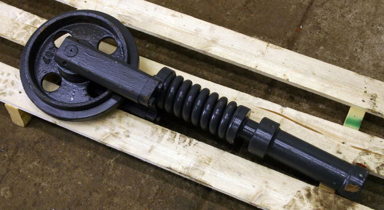 Crawler axle, crawler chassis, mini excavator, tracked excavator -Wheel: Ø 290 mm -Guide: 70 mm -Feather -tensioning cylinder