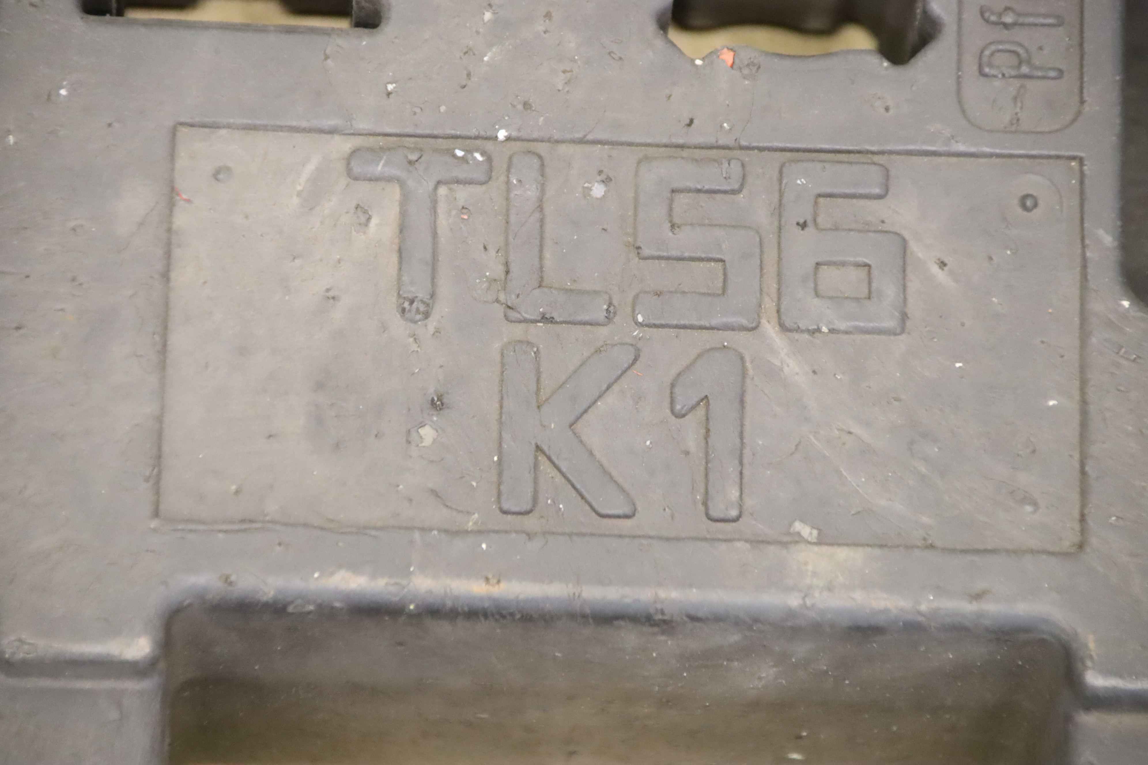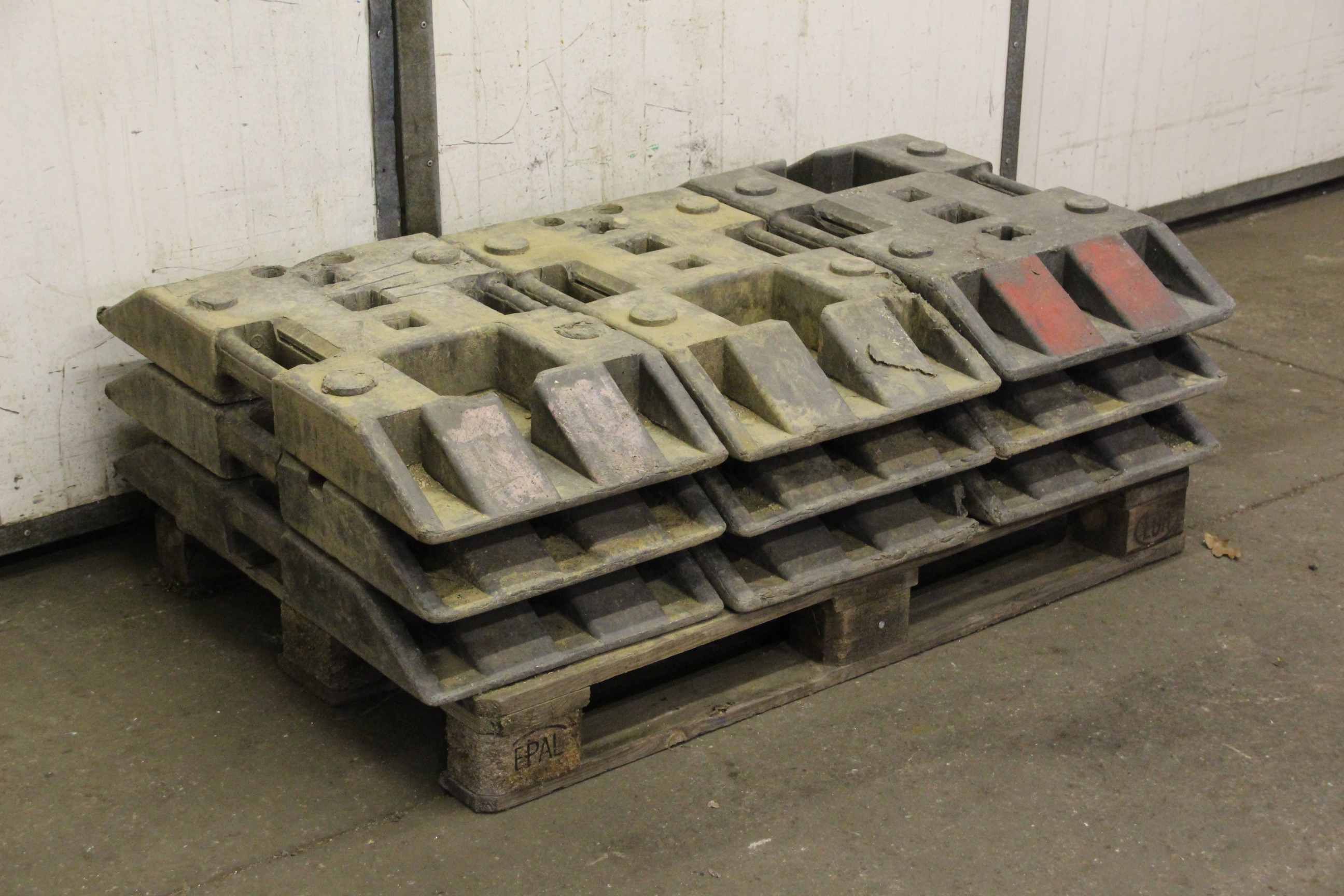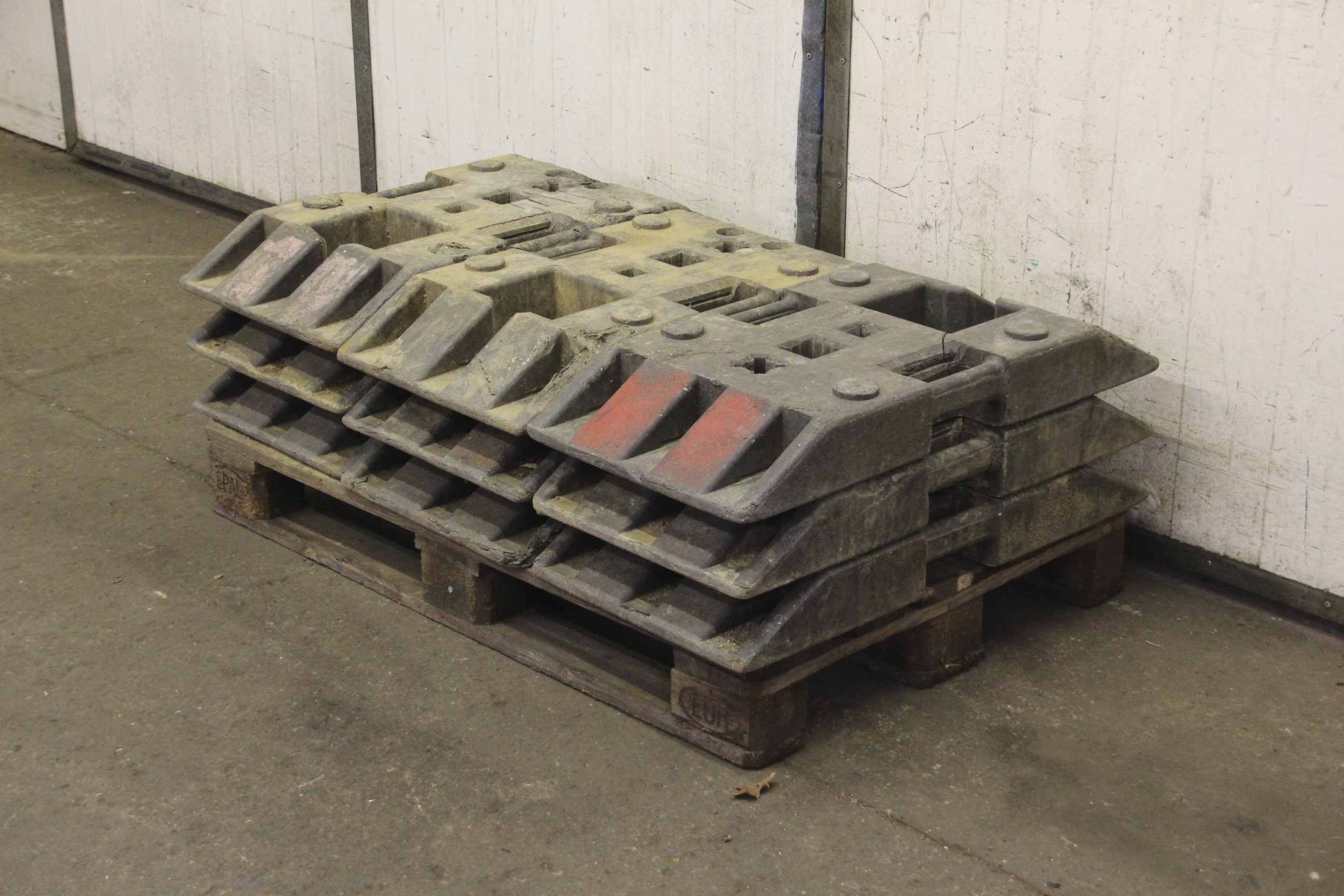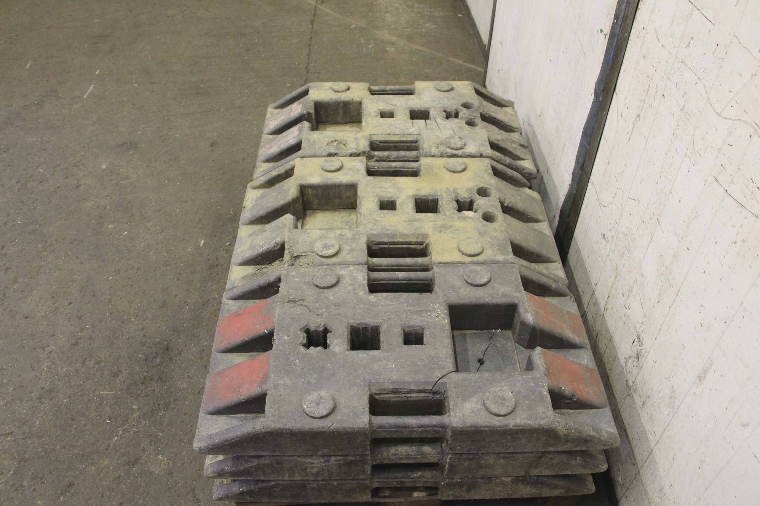 Footplate, site fence foot, barrier foot-9 pieces: TL plastic footplate-Price/fee: complete-Dimensions: 820/420/H110 mm each-Weight 27 kg/piece-Total weight: 246 kg