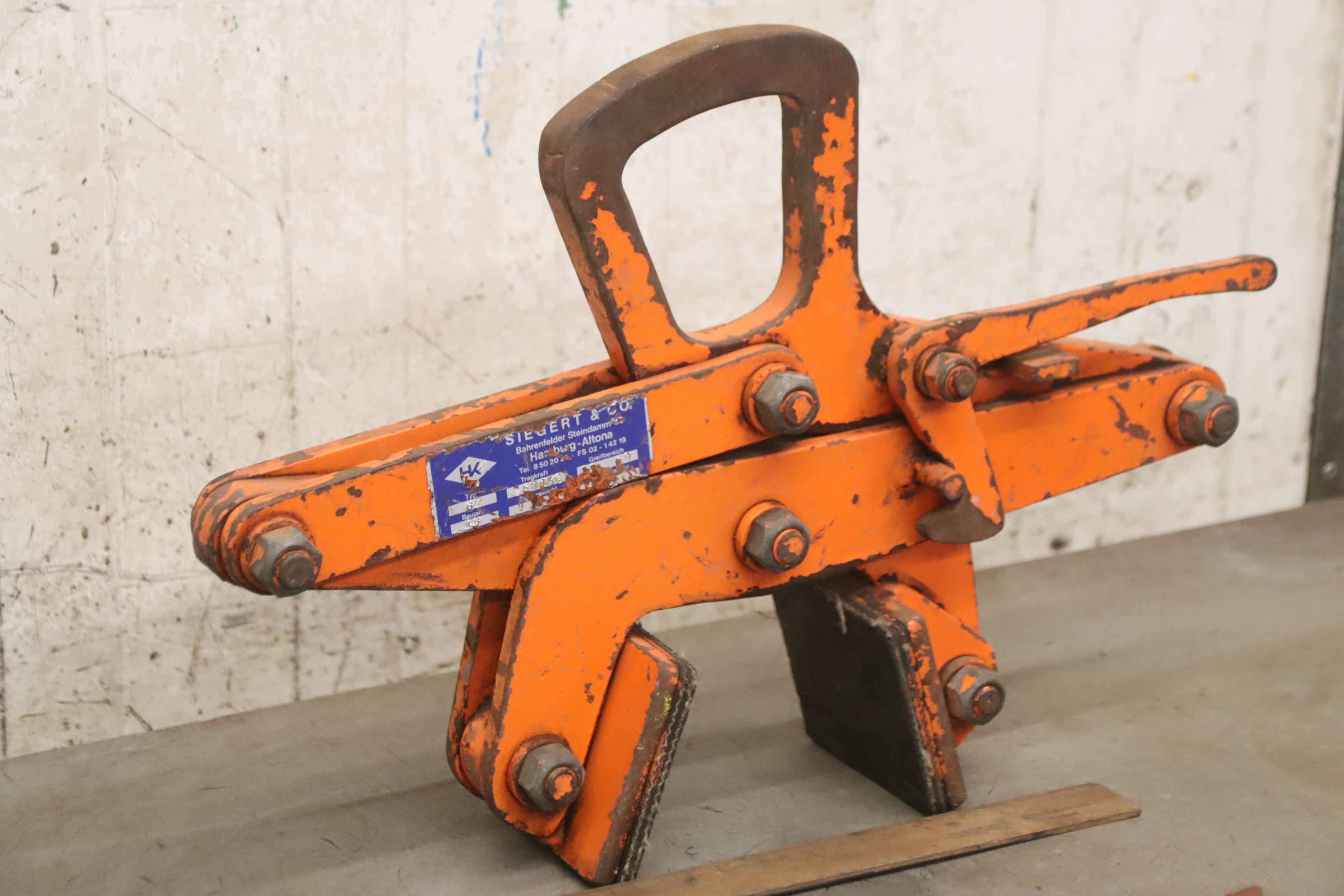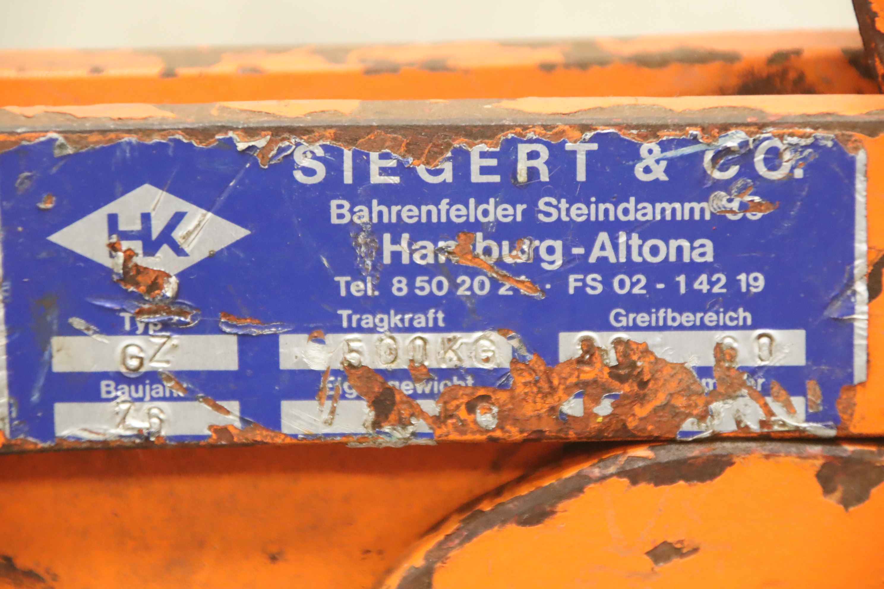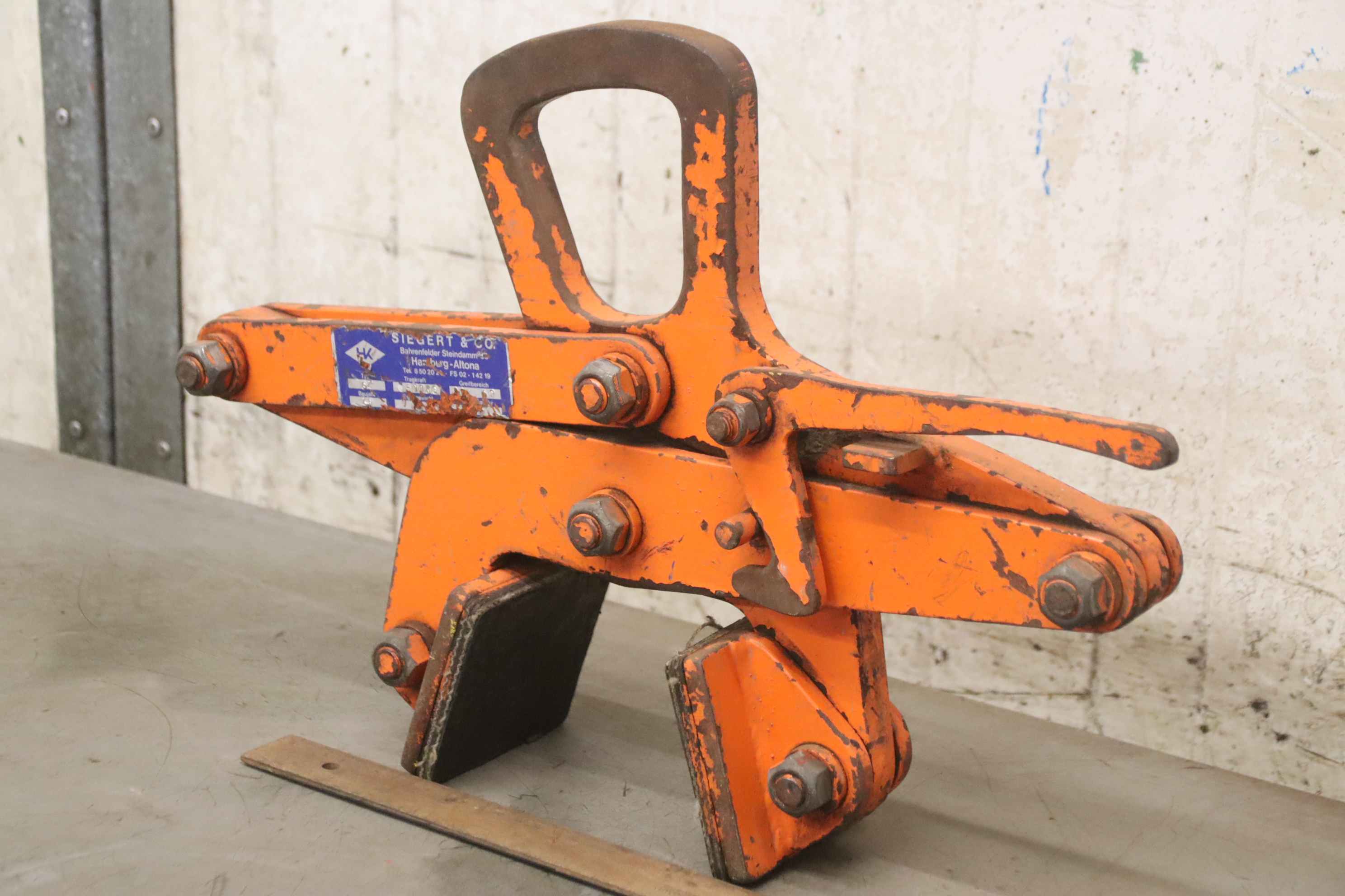 Pipe grab, round grab, laying tongs, round material grab, scissor grab, rectangular tongs, clamp, clamping pliers -Manufacturer: Siegert, rectangular pliers type GZ -Grasping range: 20 to 60 mm -Load capacity: 500 kg -Quantity: 1x gripper available -Price: per piece -Dimensions: 500/100/H350 mm -Empty weight: 17 kg/pc.