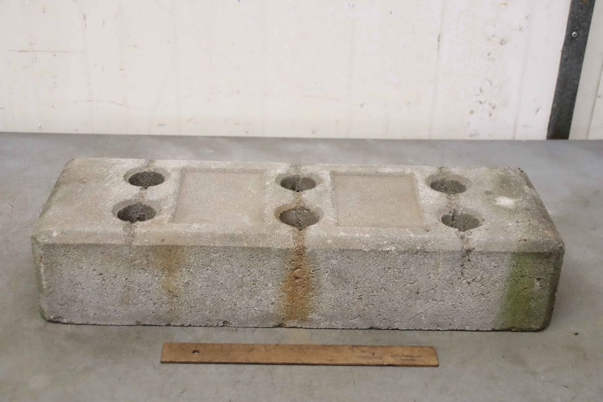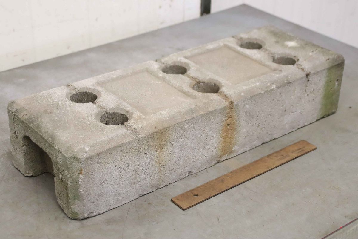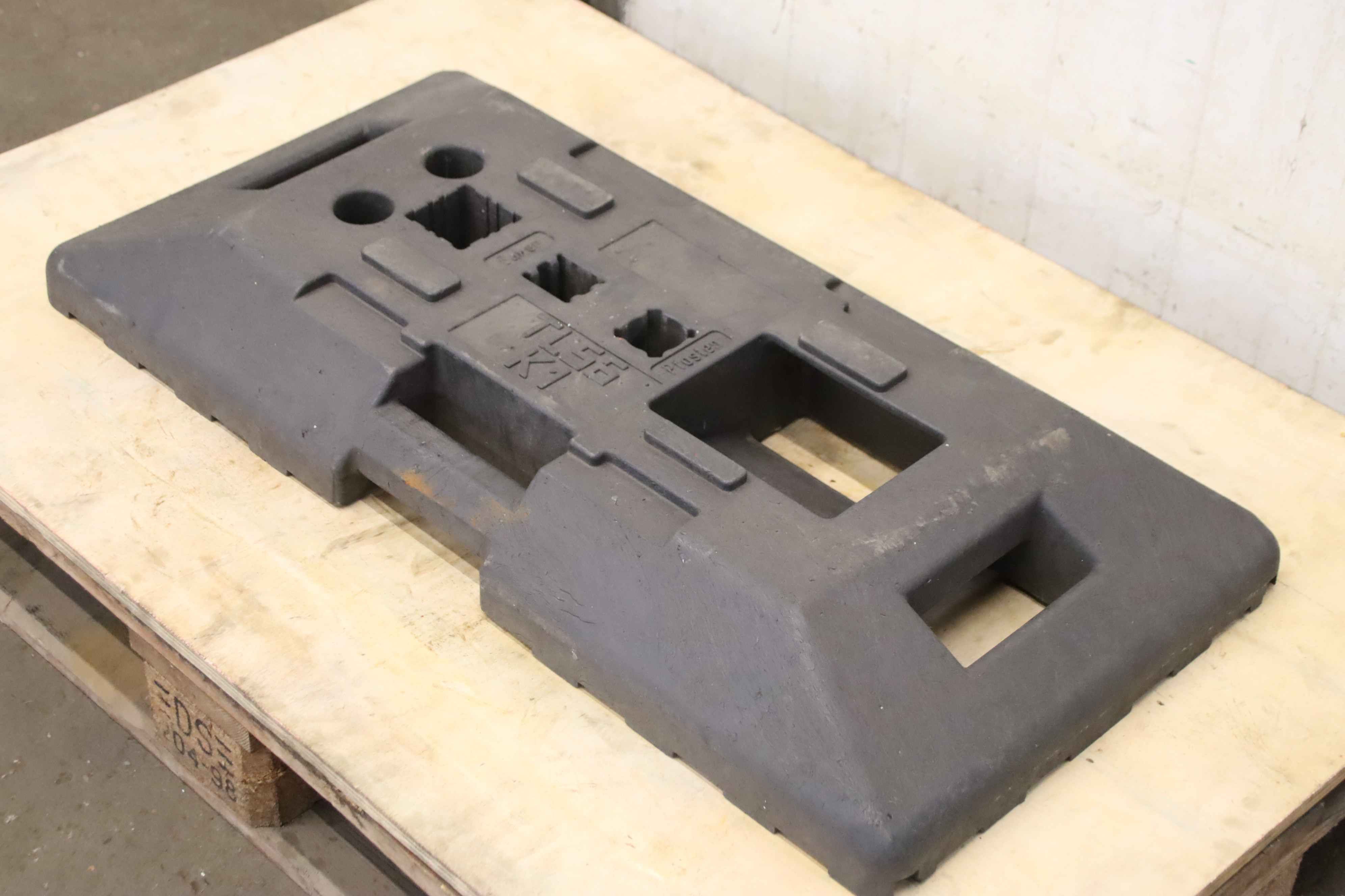 Base plate, site fence base, barrier base-Footplates: made of concrete, 19 pieces-Intake: 6x Ø 45 mm-Price/delivery: complete-Dimensions: 620/220/H130 mm respectively-Weight 33kg/pc-Total weight: 627 kg