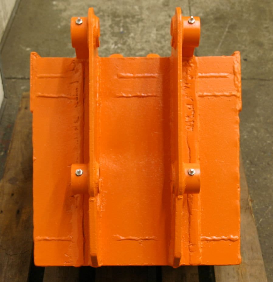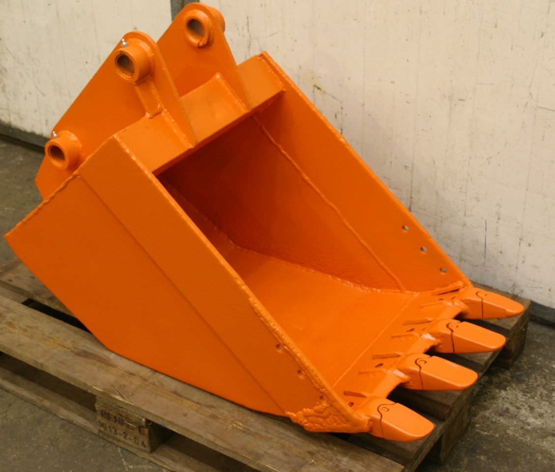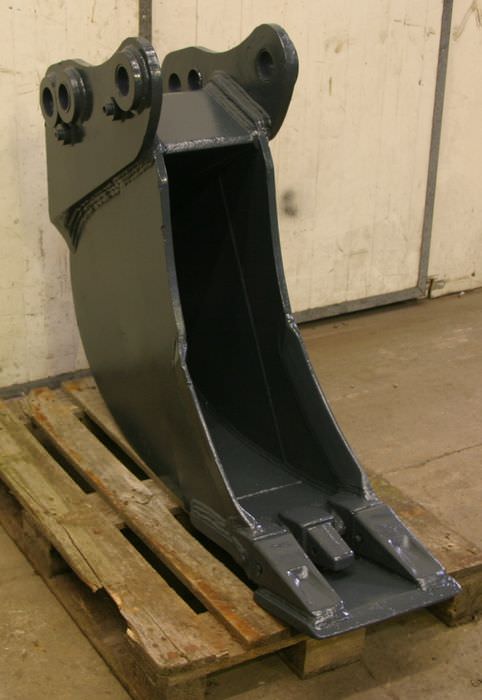 Digging bucket, excavator bucket, demolition bucket, trenching bucket -Design: stable -Width: 280 mm -Height: 750 mm -Depth: 1000 mm -Intermediate dimension: 290 mm -Hole diameter: Ø 60 mm -Laceration teeth -extended cutting edge -The design of the spoon attachment can be changed by us for an additional charge. -Empty weight: 340 kg