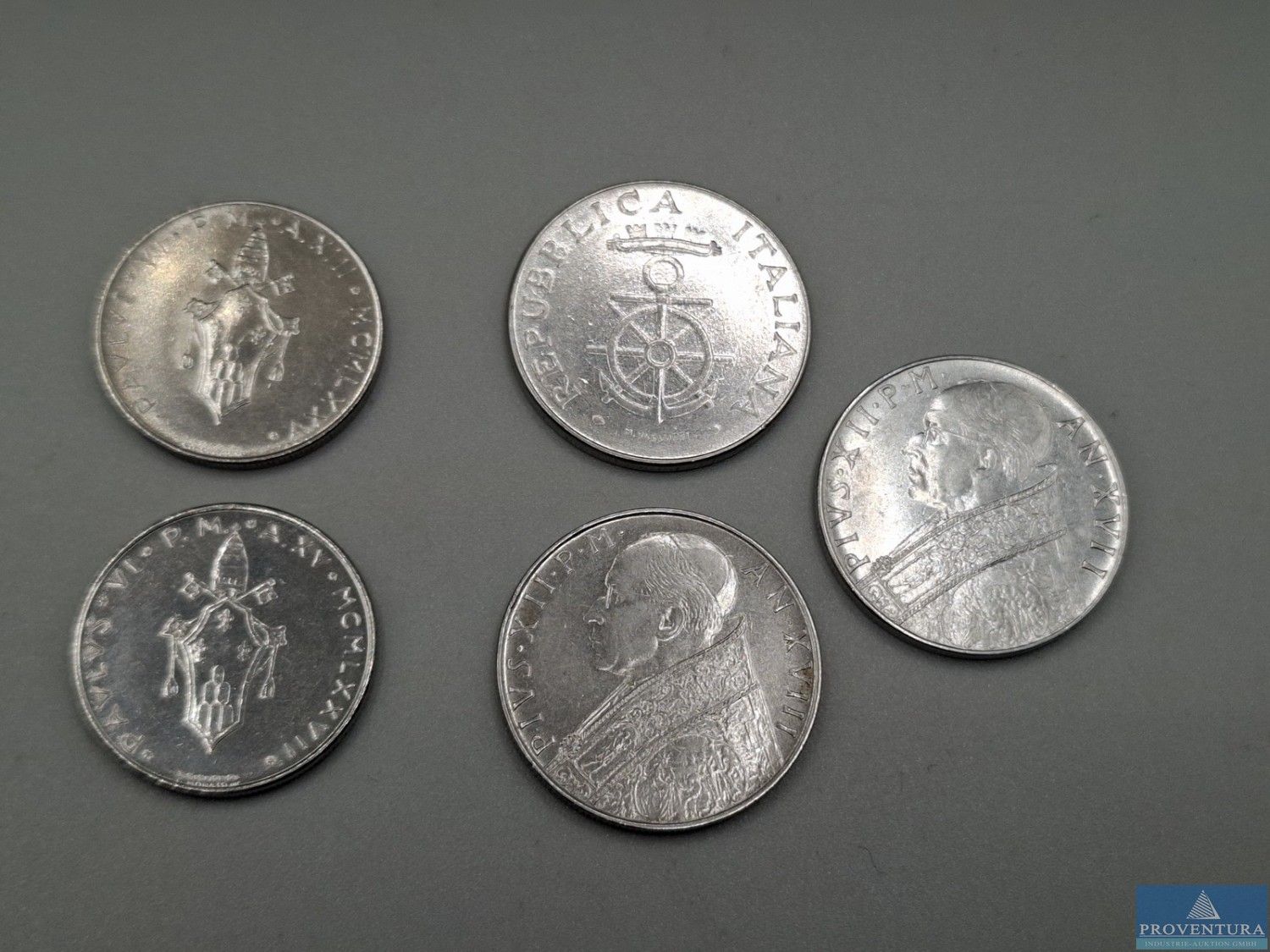 Оборотные монеты Ватикана номиналом 2x 5 лир 1951, 2x 10 лир 1951, 2x 50 лир 1975, 2x 100 лир 1956, 1x 1981