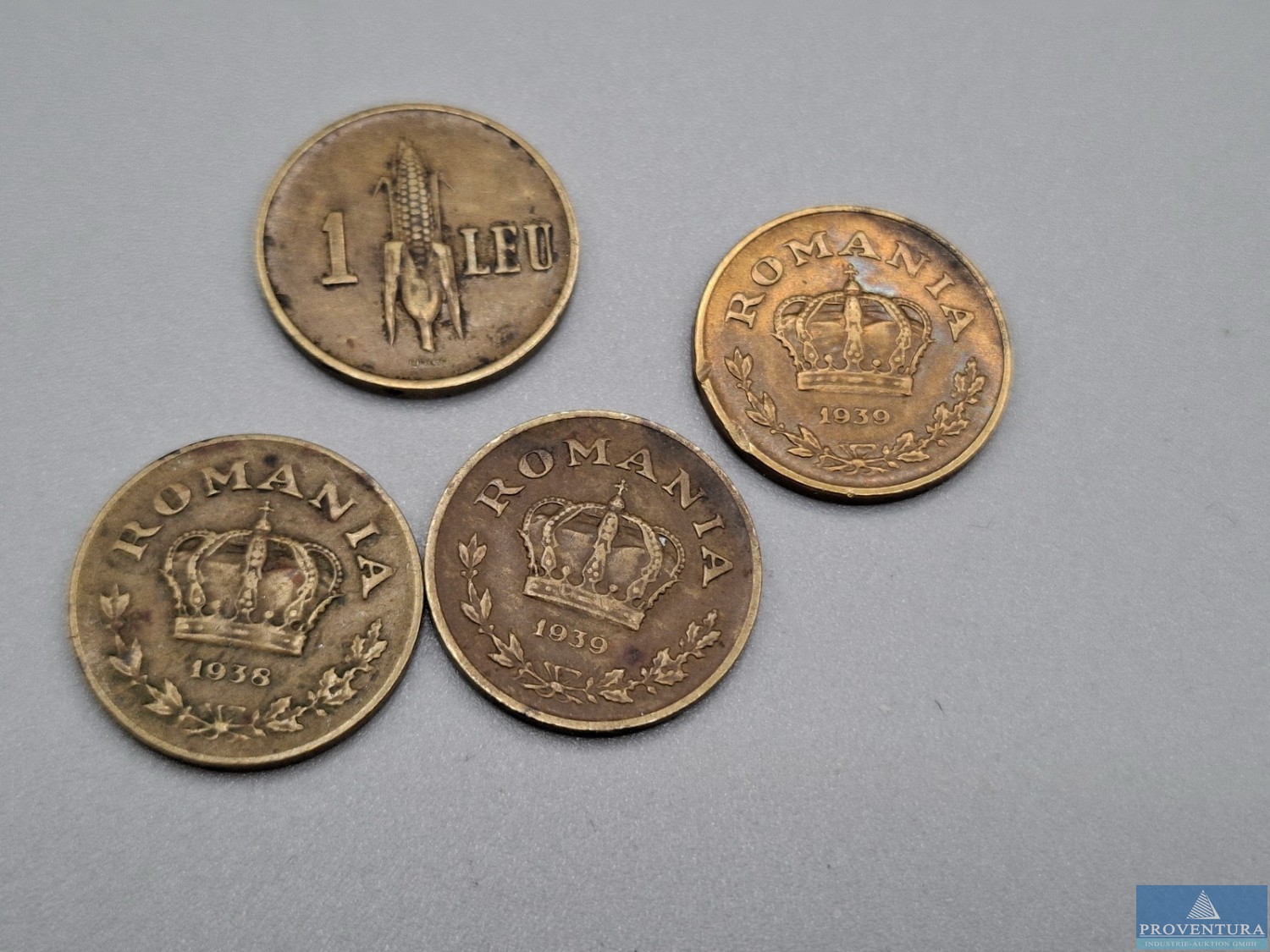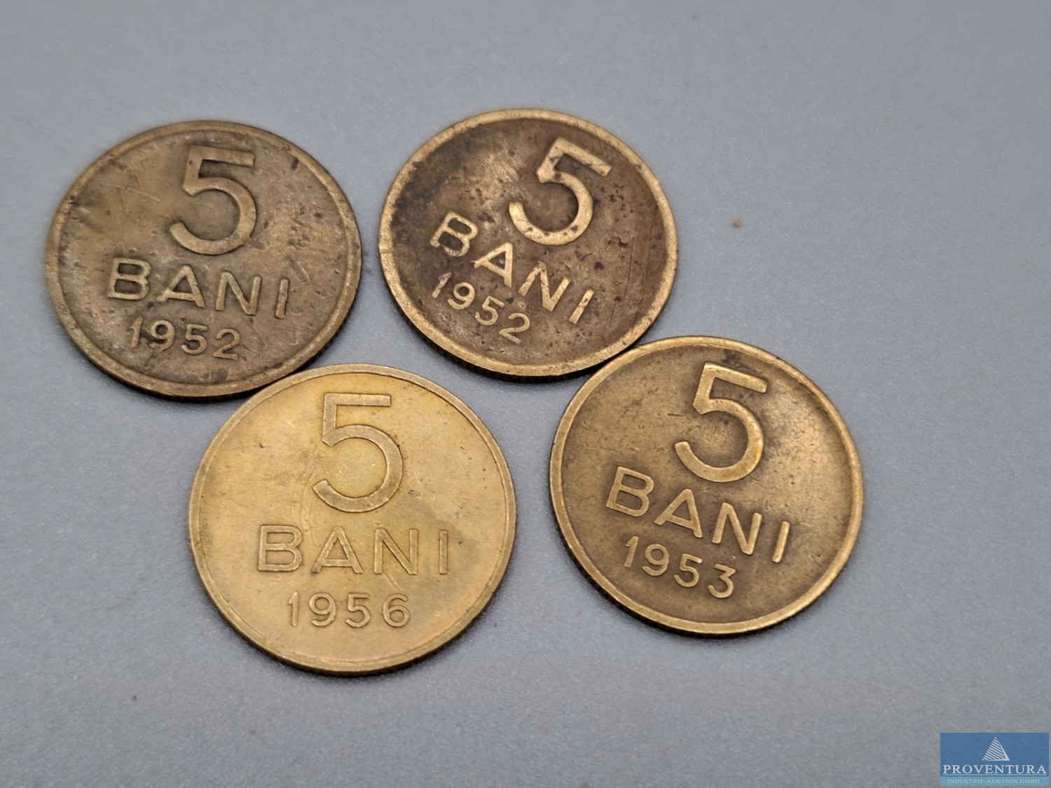 Обращение монет: Румыния 3x5 бани 1905 1906, 2x 10 бани 1905 1906, 2x 1 леу 1924, 3x 10 леев 1930, 4x2 леи 1924, 6x 5 бани 1952–1957, 4x 1 леу 1938–1939, всего около 24 монет