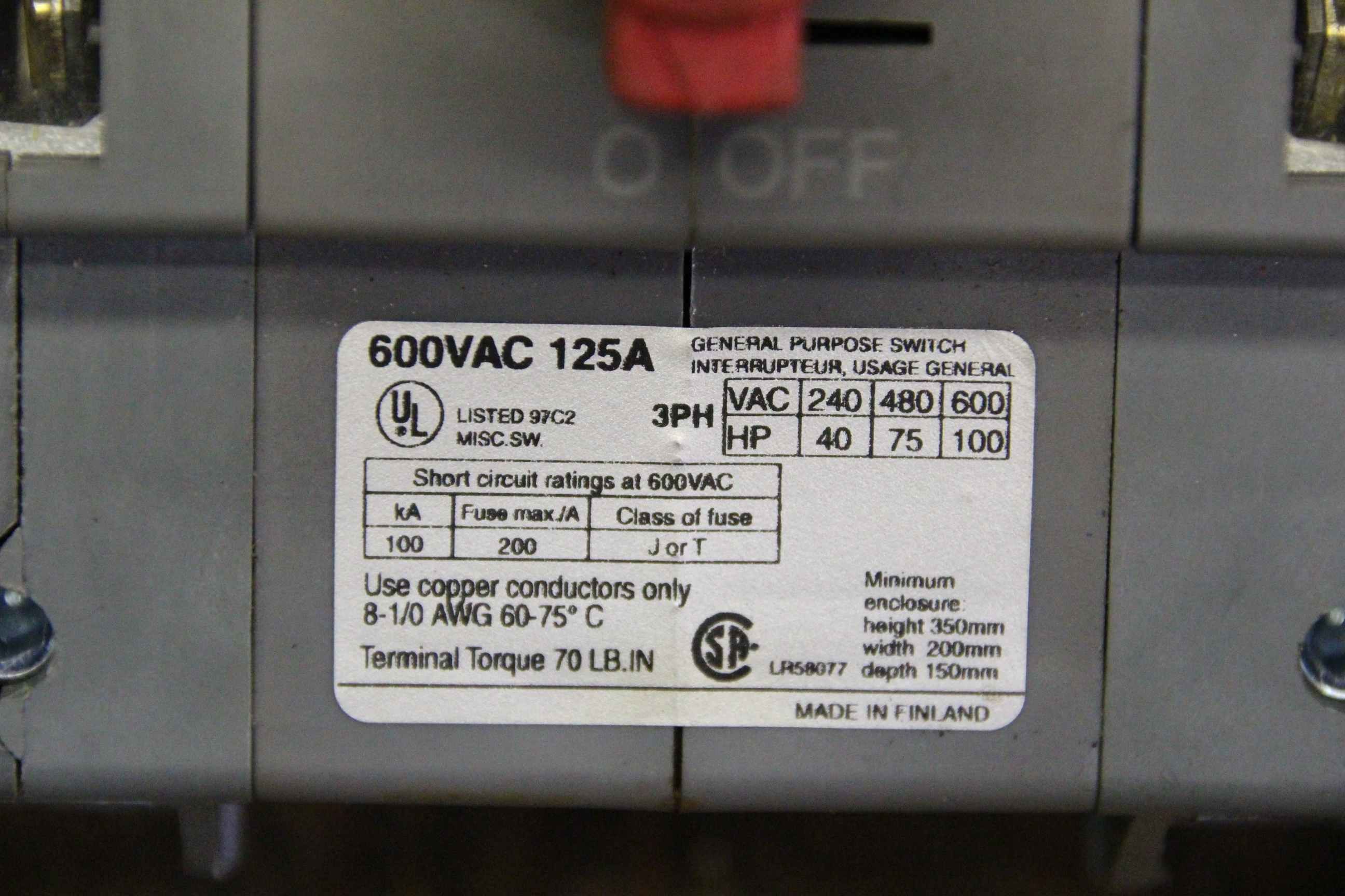 Тип техники: Switch disconnector