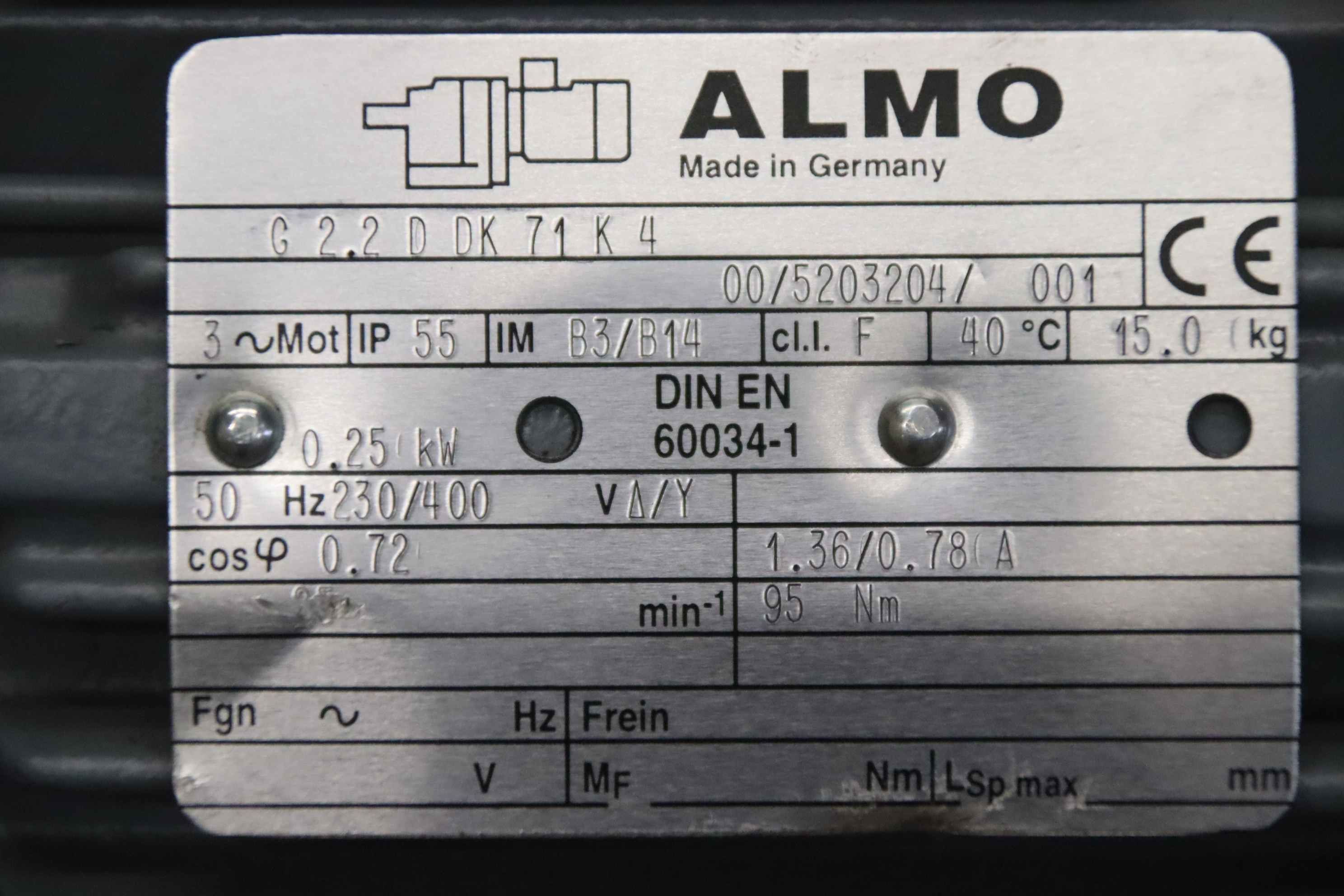 Тип техники: Gear motor 0.25 kW 25 rpm