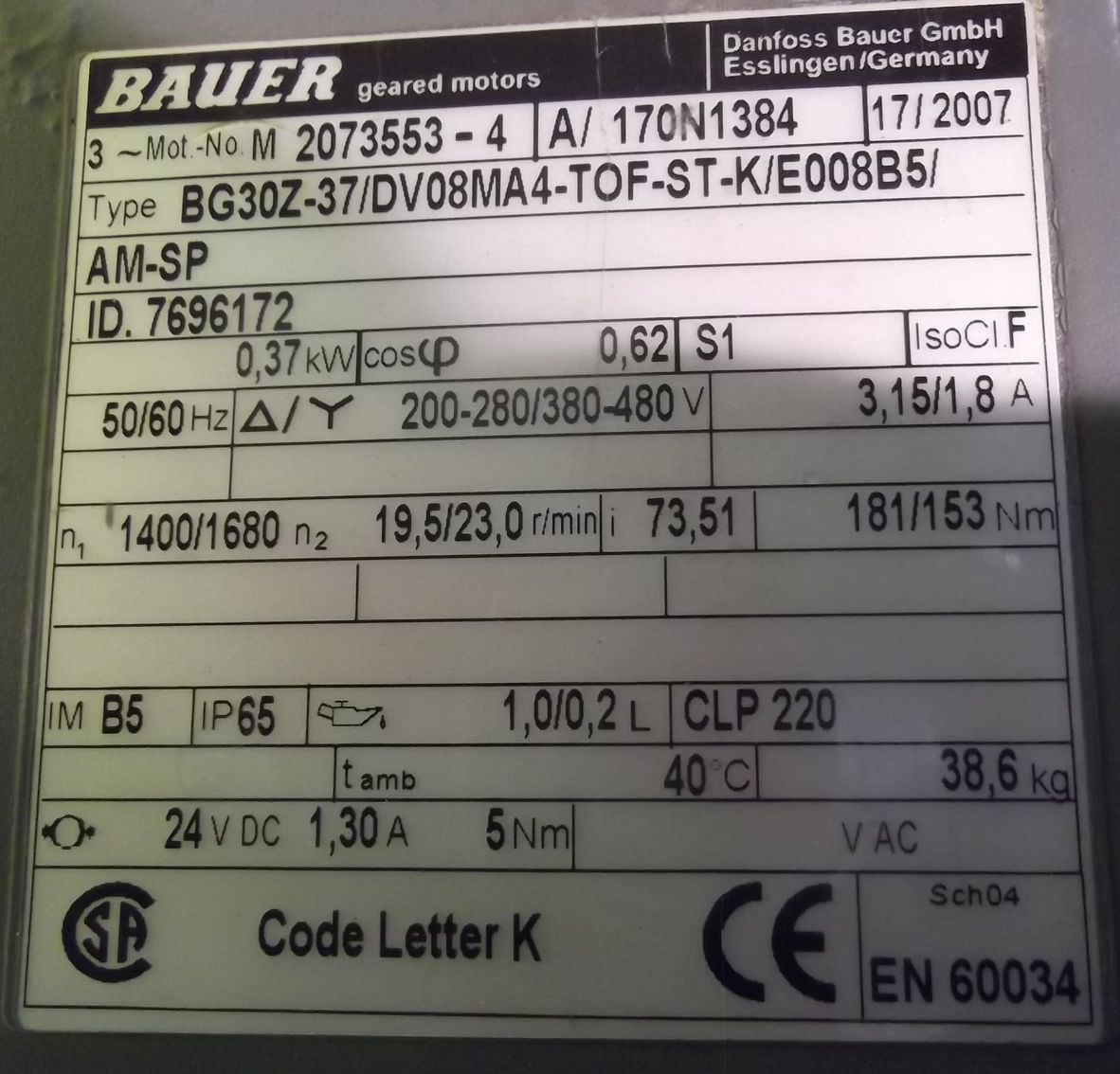 Тип техники: Geared motor 0.37 kW 19.5 rpm