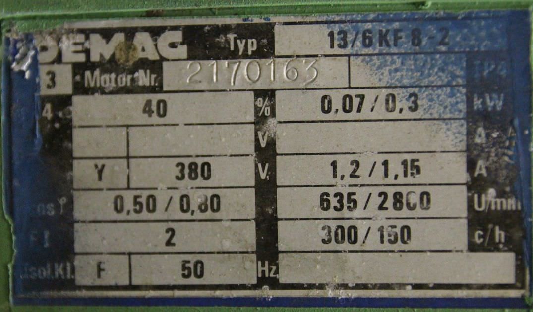 | 2010 | DEMAG | DC 10-2000 | 1700 EUR | [Jan 2025] |