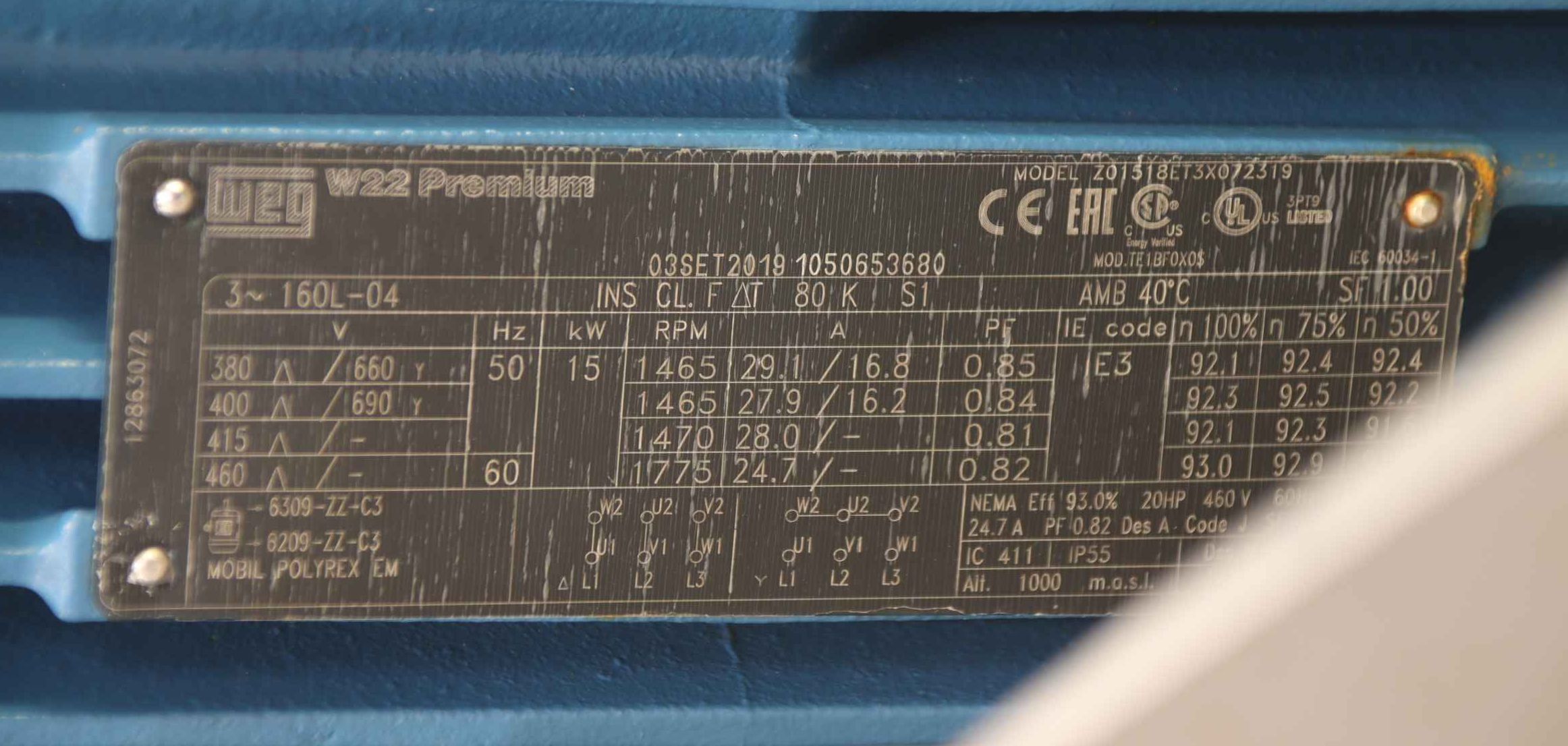 Тип техники: Axial fan 15 kW 1465 rpm stainless steel