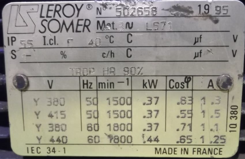 Тип техники: adjustable gear motor 0.37 kW 22.5-133 rpm