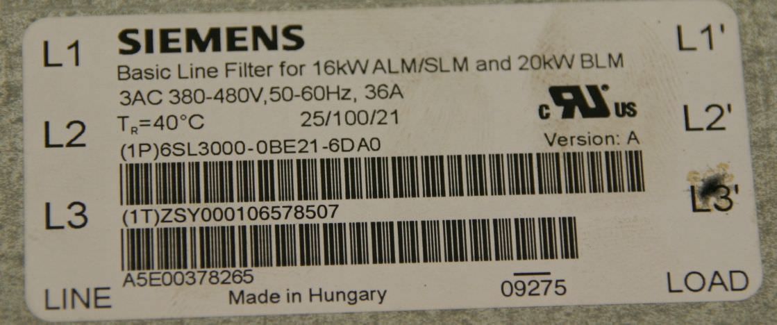 Модель:6SL3000-0BE21-6DA0