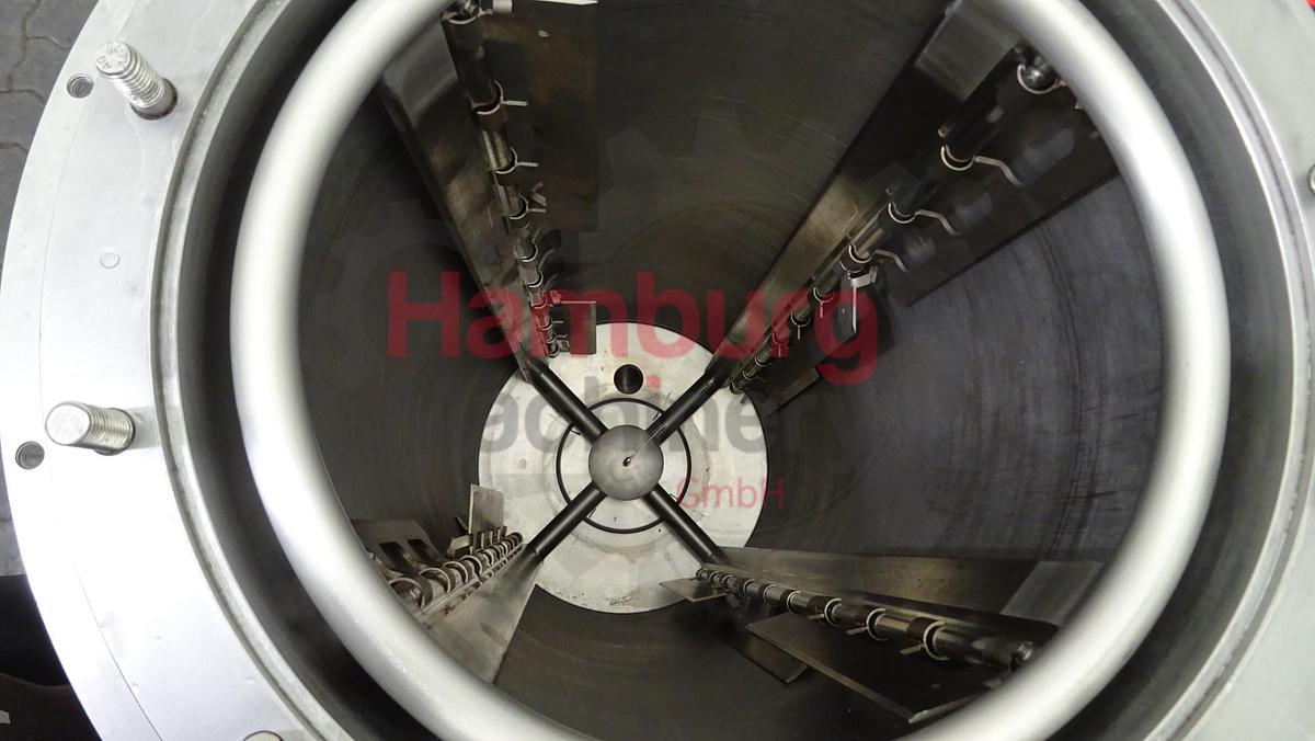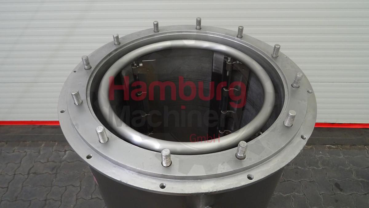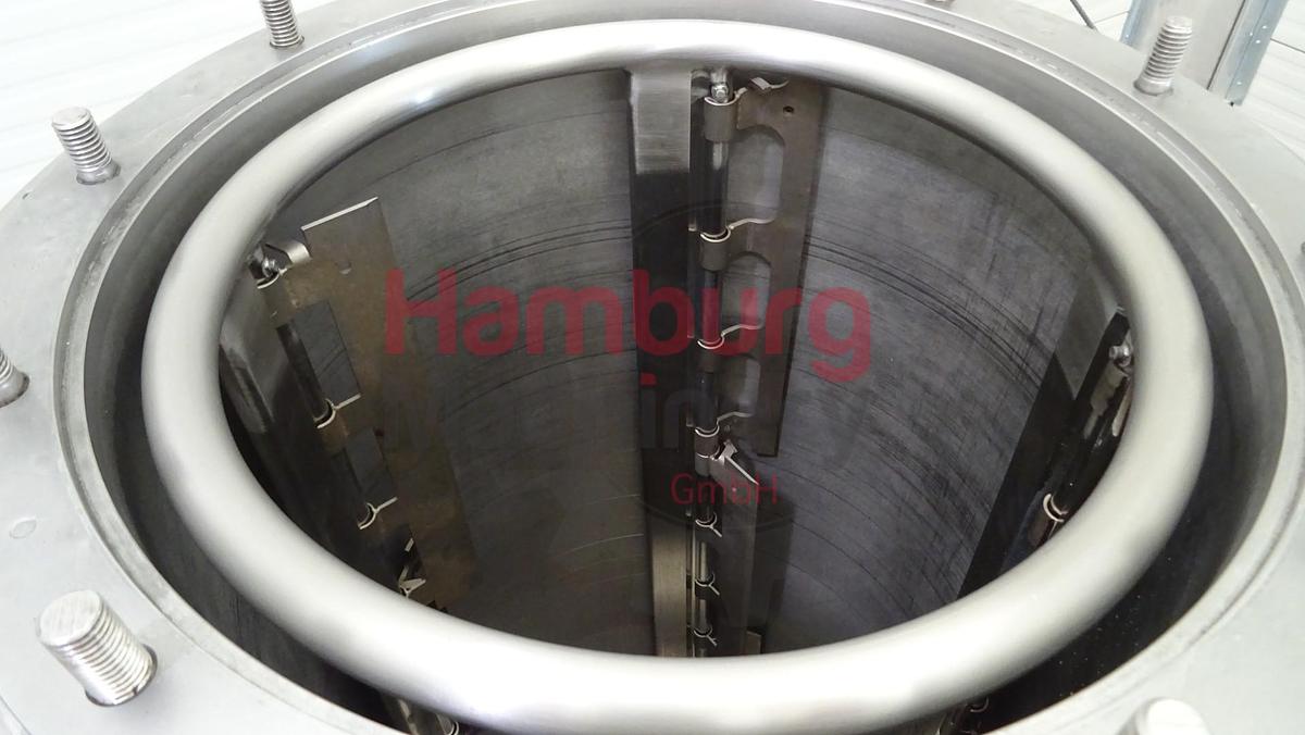 The ROTOTEMP 1,5 is a scraped surface heat exchanger for cooling or heating various products, with a heat exchange surface of 1,5 m2. The heat exchanger consists of a jacketed outside cylinder and a jacketed internal cylinder. The outside jacket is insulated and finished with stainless steel sheeting. The product space is located between the two cylinders. A rotating cage with scrapers is fitted in the product space. The scrapers ensure proper mixing during the tempering process. Because the cylinders are scraped continuously, it is possible to cool crystallizing products without a product layer building on the walls. It is also possible to heat products without the danger of sticking to the walls. Thanks to these characteristics and the design of the installation, it is also possible to accurately perform heat exchange processes for products with high viscosity., Technical specifications, - Drive: 3 kW geared motor., - Speed: 18 rpm at 50 Hz., - Material cylinder: stainless steel, with hardened surface., - Number of scrapers: 12., - Max. product pressure: 8 bar., - Product inlet connection: NW40 / 1½ female., - Product outlet connection: NW40 / 1½ female., - Temperature sensors: 1 sensor on inlet and 1 sensor on outlet., - Pressure sensor: 1 sensor on inlet., - Cooling/heating liquid connections: BSP ¾”., - Capacity cooling / heating liquid: 3000 ltr/h at 2 - 2.5 Bar., Type of Machine: Scraped Surface Heat Exchanger (SSHE), Heated surface: 1,5 m2, Maximum product pressure: 8 bar, Total number of scrapers: 12 pieces, Cooling / heating liquid: 3000 ltr/h at 2 - 2.5 bar, Motor: 3 kW - n2: 18 rpm - 380 / 514 V - 50 Hz, Dimensions: 135 x 95 x 165 cm, Weight: 390 kg