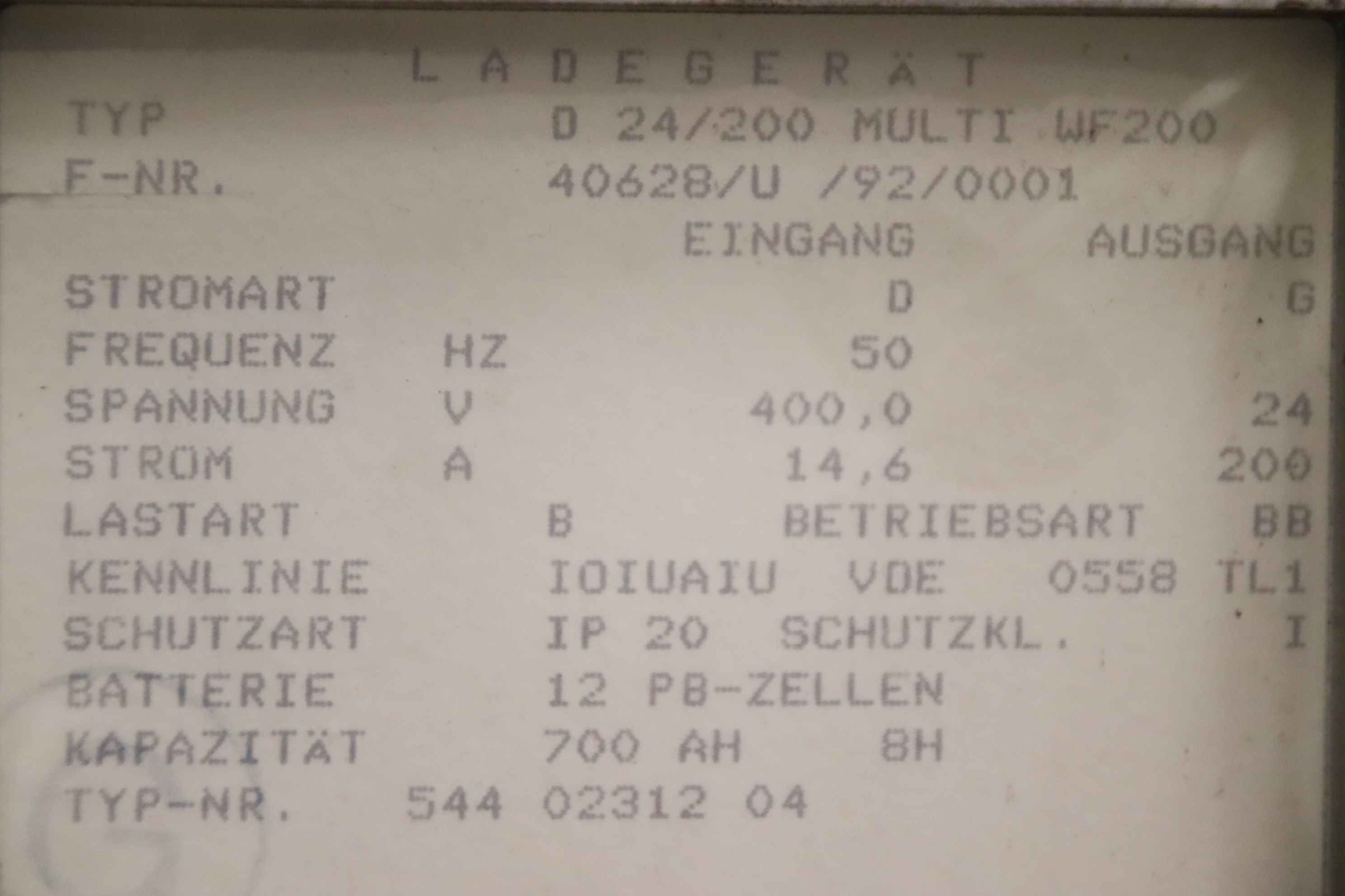 Тип техники: Charger for forklifts 24 V/200 A