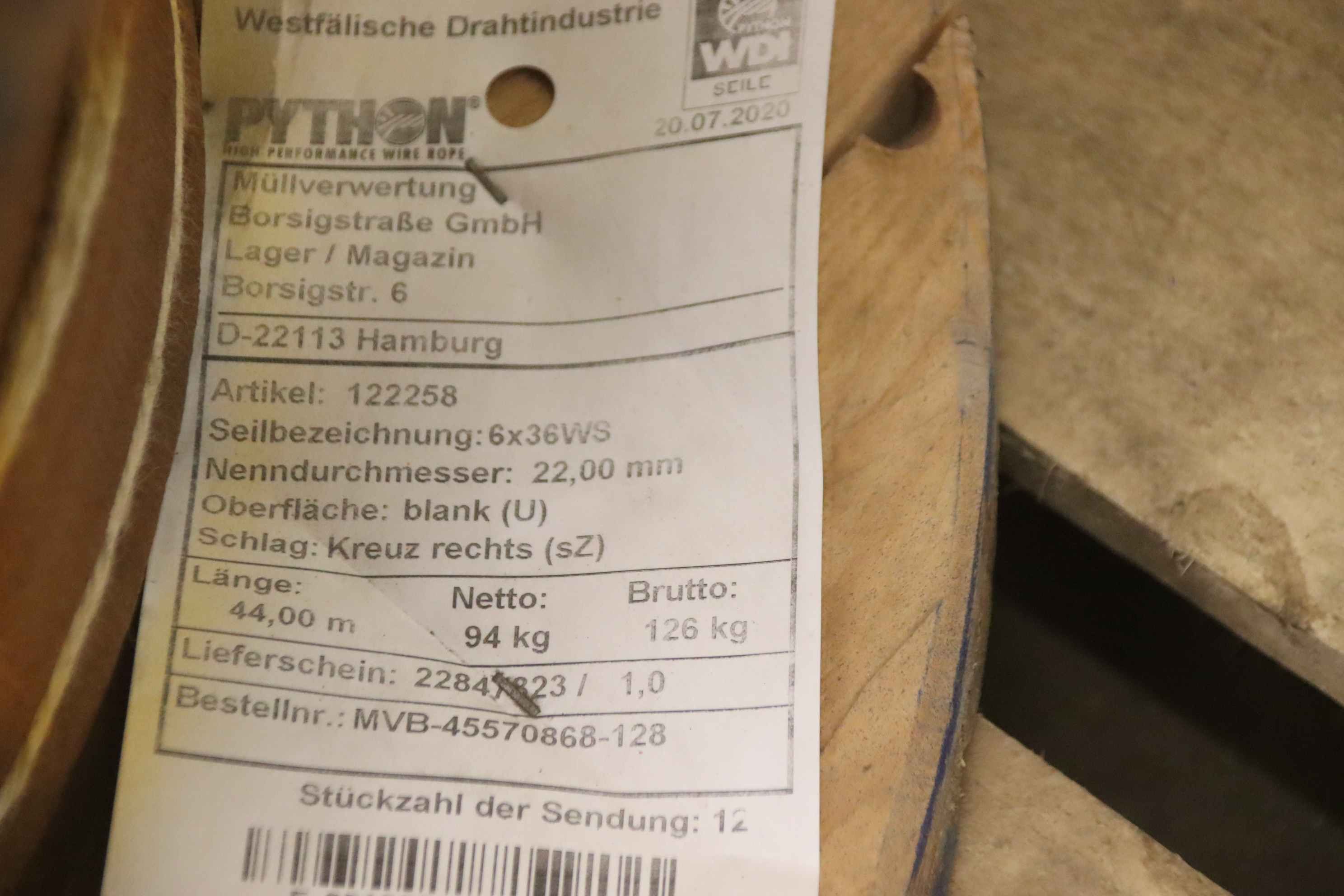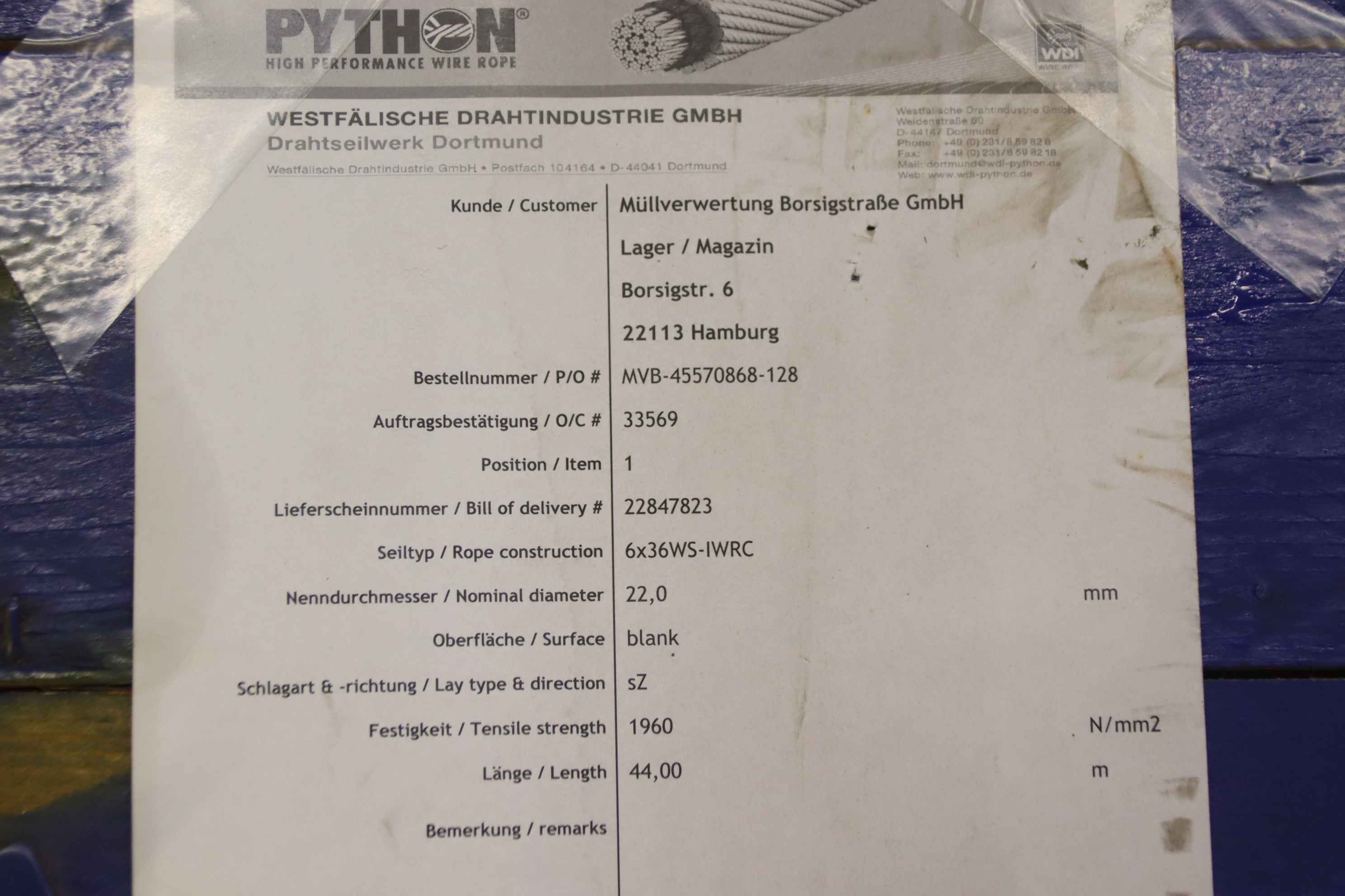 Тип техники: crane rope Ø 22 mm 44 m
