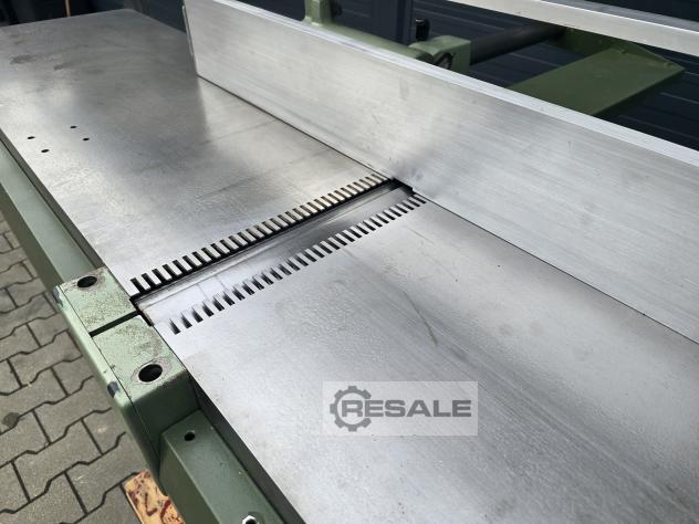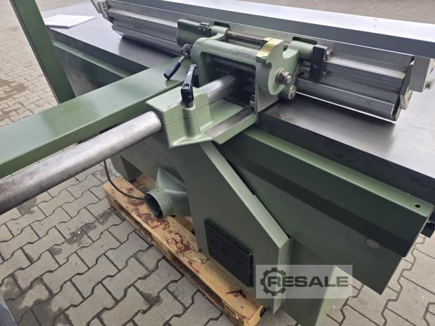Sega da tavolo scorrevole SAC CS40 Anno di costruzione: 2008 S/N 312029 Lunghezza di taglio 3.200 mm Tavolo scorrevole in alluminio anodizzato 3200 x 420 mm, Meccanismo di bloccaggio per un facile caricamento della piastra in qualsiasi posizione Sistema di scorrimento in acciaio Mandrino sega principale (30 mm) 45 girevole Sollevamento e abbassamento elettrico del foglio principale. Motore principale 5,5 kW, motore autofrenante Velocità di taglio 2.600 - 4.000 e 5.600 giri/min Diametro lama max. 400 mm Altezza massima di taglio 130 mm ( 90 ) 100 mm ( 45 ) Recinzione strappo 1.500 mm Motore sega segnapunti 0,75 kW 120 mm (lama segnapunti diametro - unità di punteggio 8.000 giri/min con regolazione esterna) Fermata di lunghezza quadrata con fermate, Tavolo allungabile con stop a mitra e supporto braccio scorrevole. 400 V, 50 Hz Peso 820 kg CE, marcato