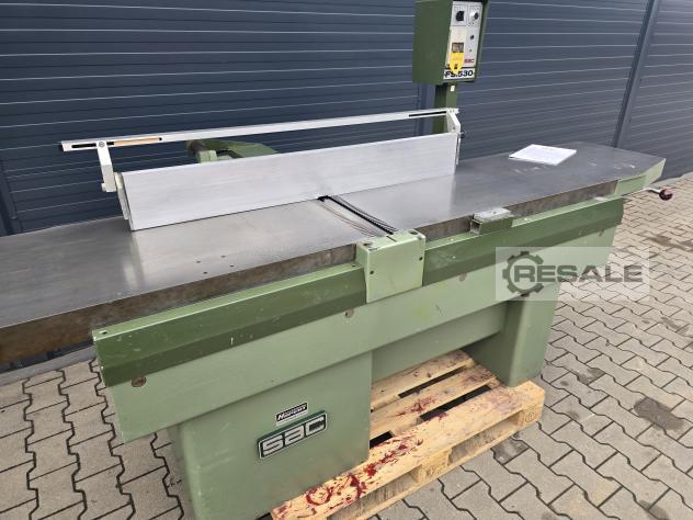 Trave di pressione SAC RS/530 ispessita, regolazione elettrica dell'altezza, rullo sotto il tavolo, motore di alimentazione separato---------- Dati tecnici ----------larghezza di piallatura: 530 mm, numero di lame: 4 pezzi, altezza di passaggio: 240 mm, velocità di avanzamento: 7 / 14 m/min., ugello di aspirazione Ã: 140 mm, motore: 4 kW, peso: 840 kg