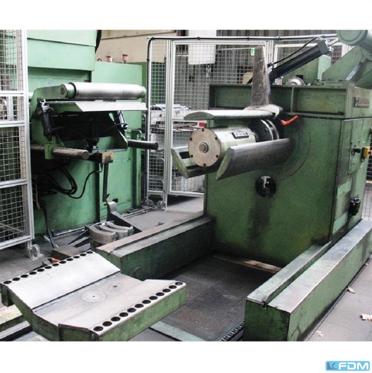 largeur de bande : 850 mmpuissance totale requise : 3,8 kW5 to. Rabatteur Schleicher- charge maximale : 5 to- Largeur de la bande : 1500 mm- Épaisseur de la bande : 1 mm- Année de construction : 23/04/92- Tension : 24/380 V 50 Hz- Puissance : 3,8 KWInficding : Lève-bobine, unité d’alimentation, panneau de commande, unité hydraulique, armoire de commandeLes données de cette annonce ont été créées avec ModulMWS - la solution logicielle de LogoTech oHG.