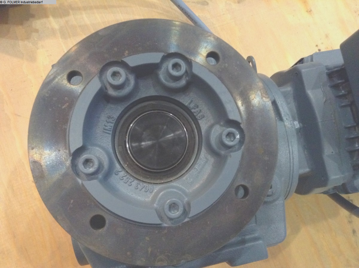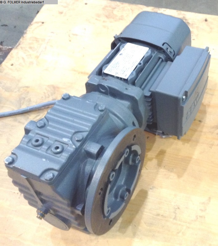 adjustable gear motor, variable speed gear motor, electric motor -Motor manufacturer SEW type: RF53V D 80 N-6 RK -Gearbox manufacturer SEW type: RF53 RK1 -Motor power: 0.55 kW -Speed range adjustable: 4.4-26 rpm -Construction: B5 -Drive shaft: Ø 30 mm -Protection class: IP 44 -Dimensions: 580/400/H210 mm -Weight: 41 kg