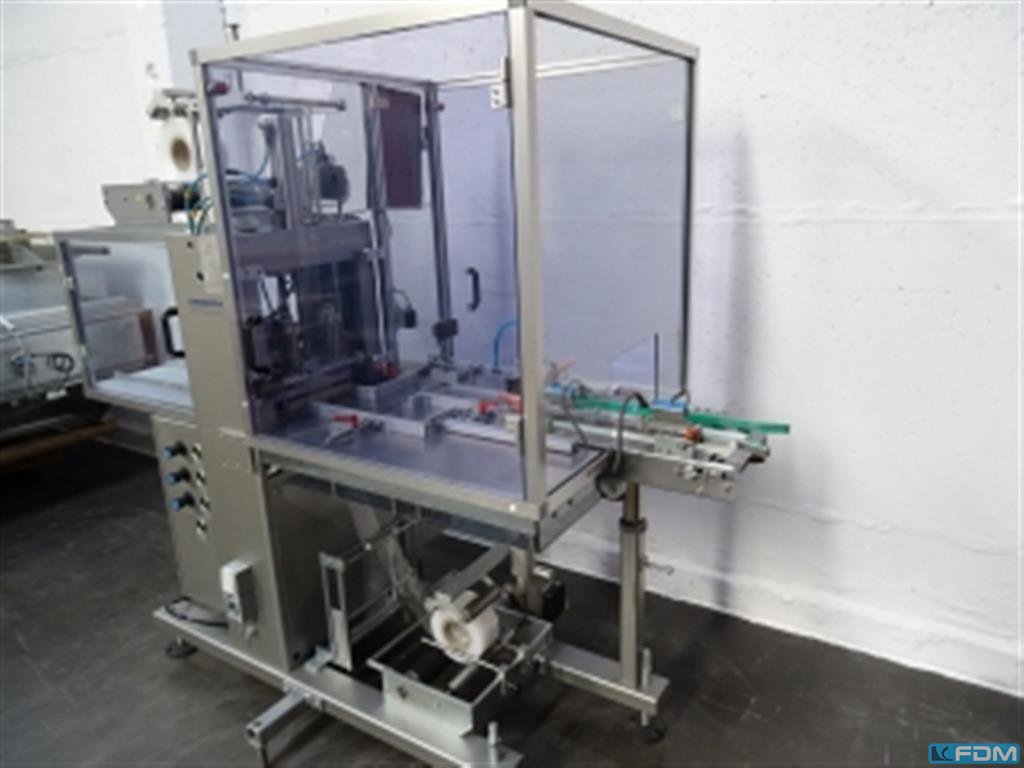 Machine can be used as stretch bander with shrink tunnel and as full wrapping machine with side folding/sealing. • Output max. 22 packs/min., depending on the format • Straight infeed • 2 infeeds: For cartons and bottles • Sealing width max. 440 mm • Insertion length 60-360 mm • Insertion width 60-200 mm • Insertion height 30-165mm • Packing material PE/PP • Film width max. 345 mm • Format change approx. 15 min. • Stacking device • Shrink tunnel Skinettatherm with 2 blowers, 20-600°C • Outfeed conveyor after shrink tunnel 1,200 x 380 mm • PLC Siemens S7-300, touch screen Siemens Simatic TP27 • Drive 400V/50Hz