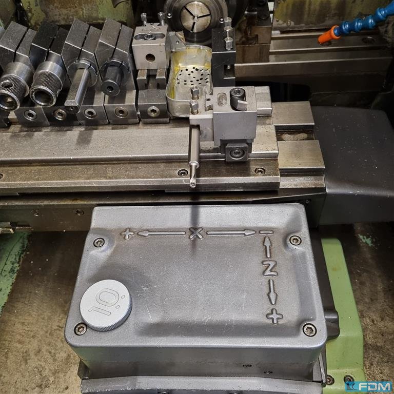Generale: Data di costruzione 2003 Ore di accensione 33.321 h Ore di lavoro 10.144 h Controllo Siemens 840D ShopTurn Max. distanza percorsa asse X 400 mm Z 400 mm Traversa rapida 12 mm/min Fuso: Velocità mandrino 8.000 giri/min Passaggio asta 32 mm Diametro di tornitura 120 mm Rivoltella: Numero di stazioni 16 volte Numero di utensili guidati 8 Portautensili VDI16 Dimensioni e peso: Dimensioni 2.500 x 1.400 x 1.700 mm Peso circa 2.300 kg Altre attrezzature e accessori inclusi: Contropunta programmabile Volantino elettronico Estrazione con nebbia d'olio Preparazione per caricatori di barre