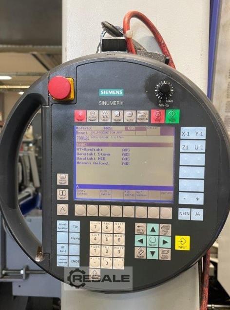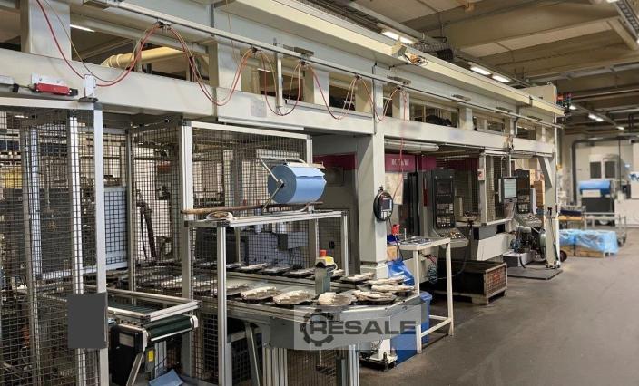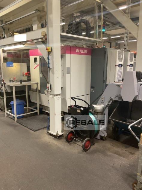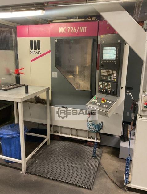 Vertical 5-Axis Machining Centre – Mill-/Turn Centre Stama MC726/MT – Milling / Turning – from billet Year 2008 Siemens Sinumerik 840D sl CNC 2-Axis NC Rotary / Tilting table with collet chuck Clamping capacity 15~80mm diameter C-Axis 360° A-Axis 120° X 500 mm Y 380 mm Z 360 mm 42 station ATC Turning spindle 20/50KW / 4000 rpm Milling spindle 17/37 KW / 10500 rpm 2 x machines available as a machining cell or individual machines sale They are currently connected in a production line. Both machines have their own chip conveyor, but they have only one coolant tank with different coolant pumps. Under power in the factory. Both machines are well maintained and in perfect condition. Regular maintenance carried out by Stama up to 2021, since then only low utilization. ALSO AVAILABLE AS SINGLE MACHINE ! Proposal reference MV-6363 /  ...
