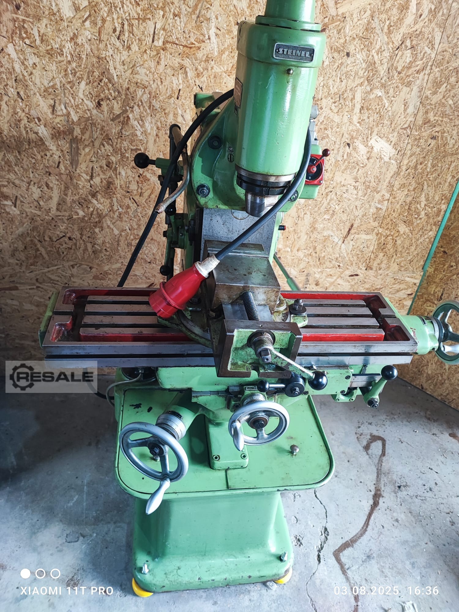 こんにちは、 ここに、製造元のシュタネル社製の中古ユニバーサ /垂直フライス盤、タイプSH 4 Dをご提供いたします。 製造元:シュタイネル 垂直フライスリングヘッドFRP 3を備えたモデルSH 4 D 機械番号。8160 X-Y-Z軸X=300mm、Y=150mm。Z=250mm。 テーブル寸法:740 x 200 mm クランプ面 620 × 130 mm スピンドル回転数 32 – 1250 rpm 給弾段 0.2 / 0.32 / 0.5 / 0.63 / 1 / 1.6 mm/min クイルストローク/ドリリングスピンドルストローク 100 mm 動力主モーター 1.5 kW 重量:約800kg。 寸法:約1,100 × 1,300 × 1,600 mm 従来型制御 注: 前述の技術データは、製造元の操作説明書、パンフ ット、その他の情報源から引用しており、正確性 完全性について責任を負うことはできません。 提供範 ...