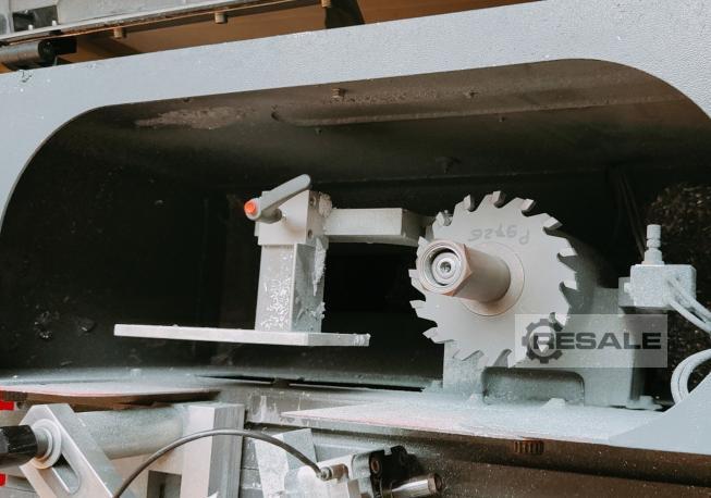 Tension de fonctionnement: 400 volts, puissance: 4 kW, vitesse: maximum 6 000 tr / min, diamètre de la lame de scie maximum: 400 mm, table de travail avec 2 fentes en T largeur: 2500 mm, réglable avec butée de profondeur: 0 - 800 mm, avec dispositif d’aspiration Sauf erreurs !