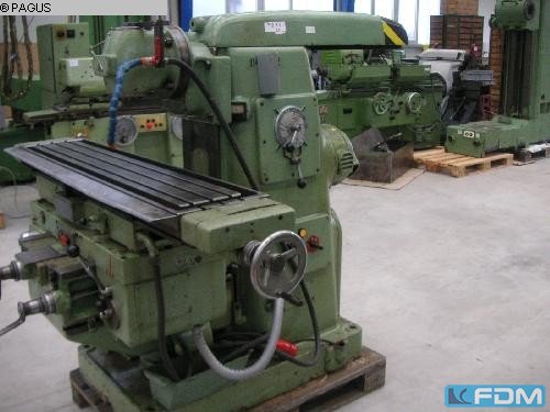 x-travel:600 mm y-travel:500 mm z-travel:400 mm spindle diameter:90 mm spindle turning speed range:45 - 2000 U/min table length:1250 mm table width:200 mm groove width:14 mm table rotating:45 ° total power requirement:4,2 kW weight of the machine ca.:2000 kg dimensions of the machine ca.:2000 x 1800 x 1550 mm Year:ca.1957 Documents:vorhanden