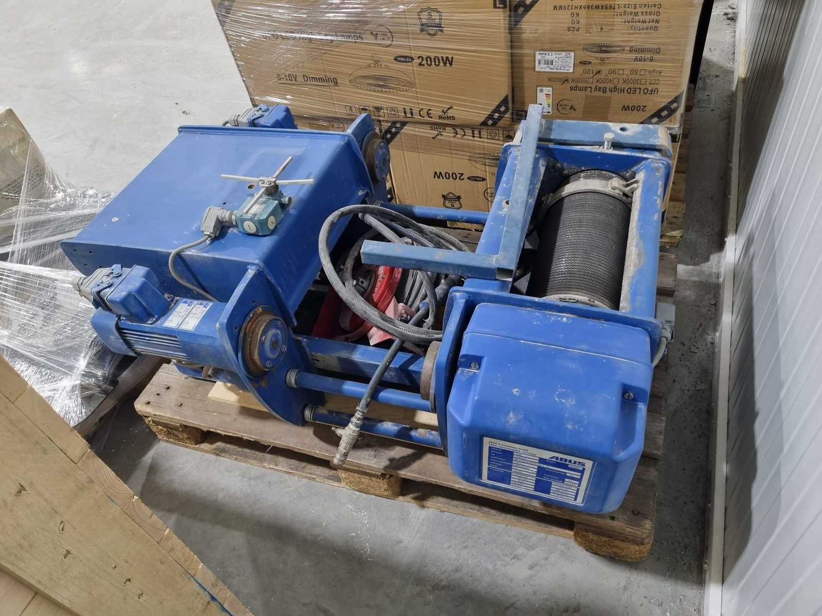 ABUS electric hoist 2.5 ton – German top quality (type GM 825) An extremely reliable electric hoist from the German quality brand ABUS Kransysteme. This hoist is designed for heavy industrial use and is in good condition. With a lifting capacity of no less than 2500 kg, this is the ideal powerhouse for your workshop or warehouse Key specifications: Lifting capacity: 2.50 Ton (2500 kg), Lifting speed: Two positions (0.80 / 5.0 m/min) for precise positioning, Maximum lifting height: 6 meters, Power supply: 3-phase (380-415V), 50 Hz. - Condition: Used but technically very solid - Thanks to the 4/1 reeving and the robust IP54 rating, this hoist is safe and resistant to intensive use. Immediately deployable. Auction-ID: A3-43501-10004
