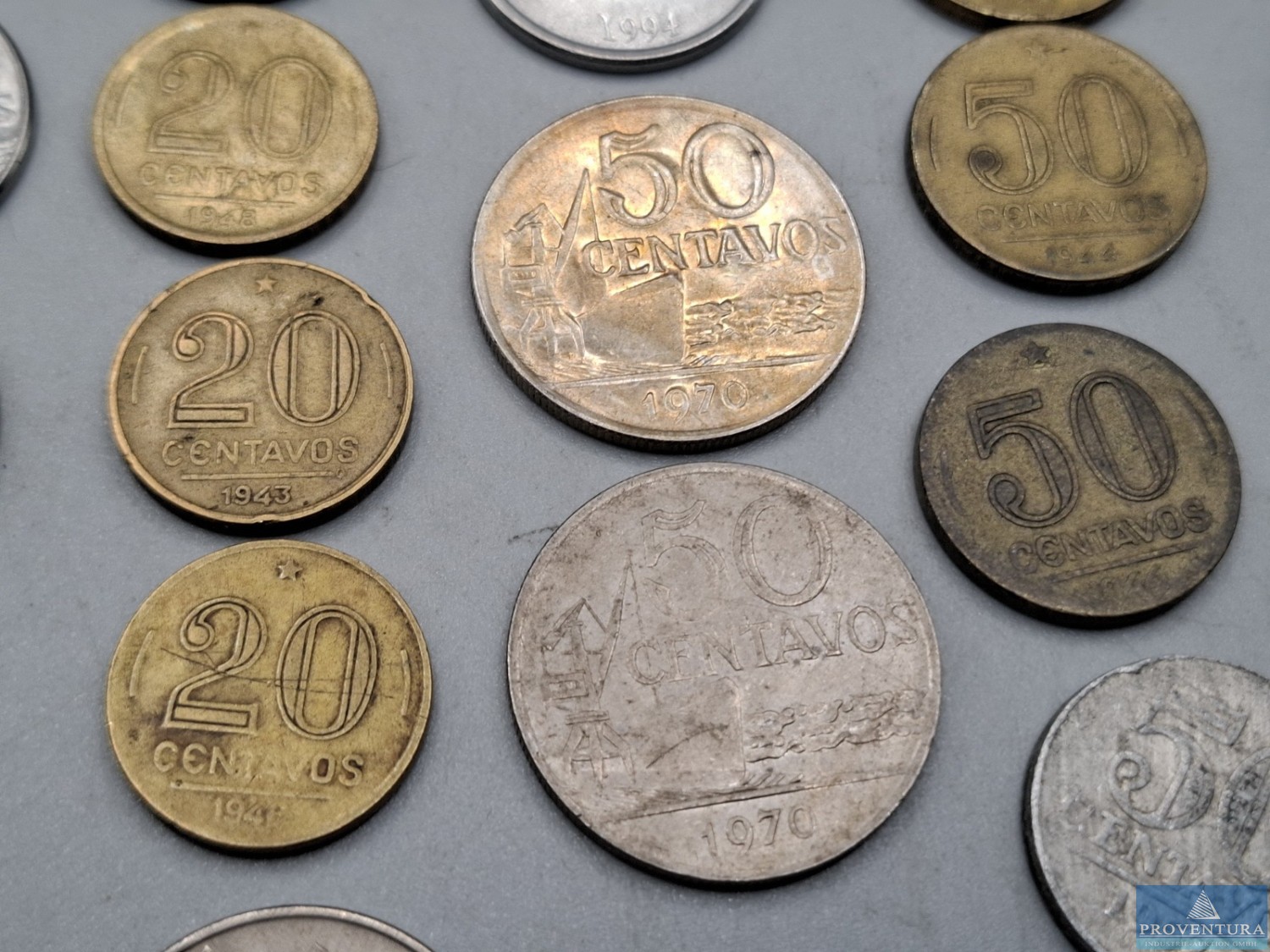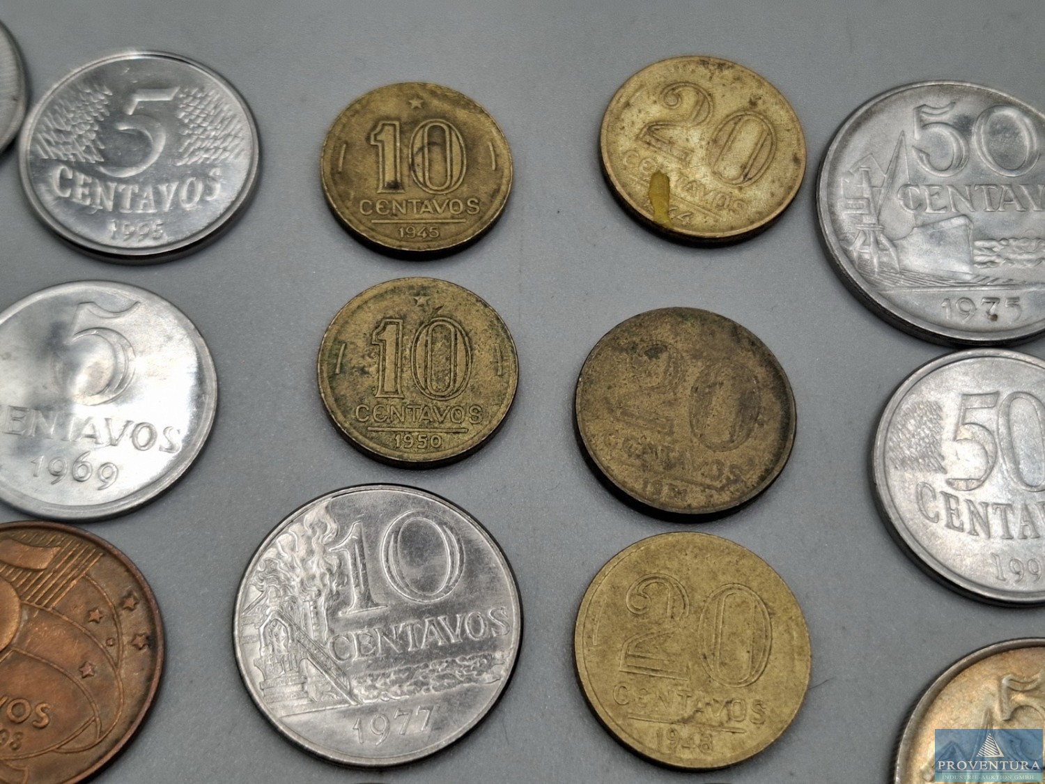 1943'ten itibaren Brezilya'da dolaşım madeni paralar 5x 1 Centavo, 2x 2 Centavo, 8x 5 Centavos, 6x 10 Centavo, 7x 20 Centavos, 9x 50 Centavo, 5x 1 Cruzeiro, 2x 2 Cruzeiros, 1x5 Cruzados, 2x 10 Cruzeiros, 1x 20 Cruzeiros, toplamda 50 tane