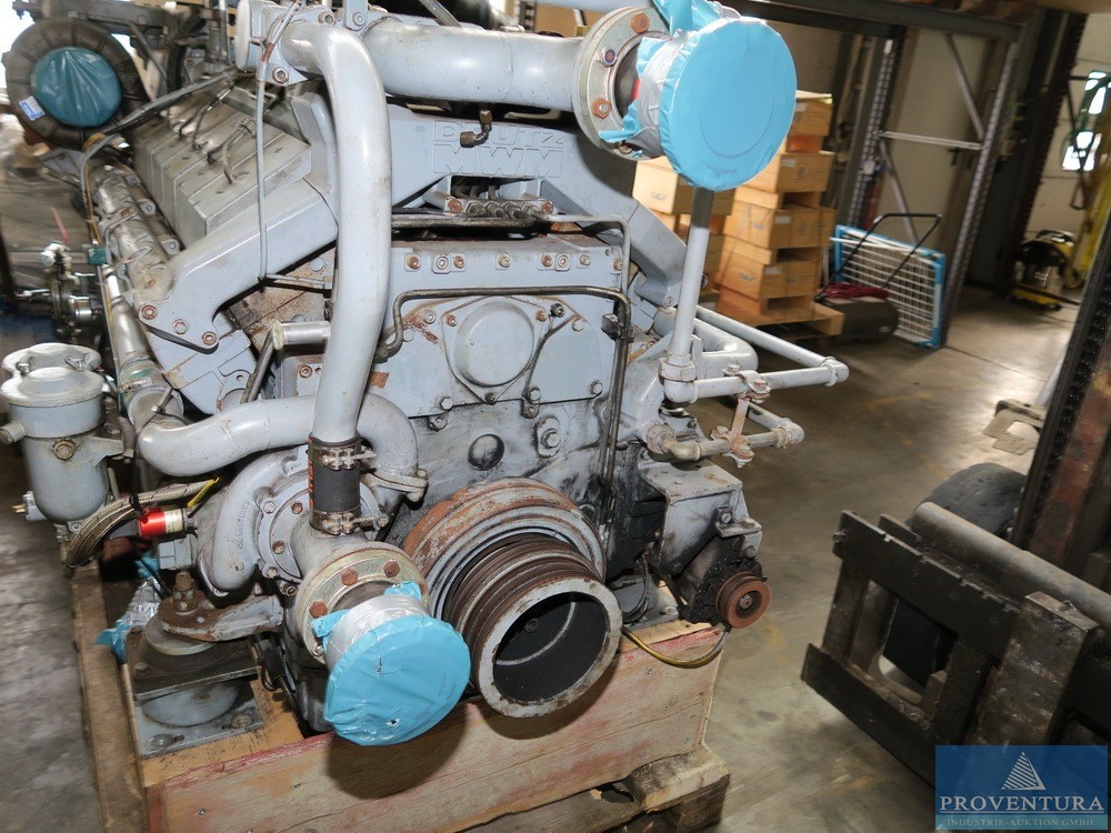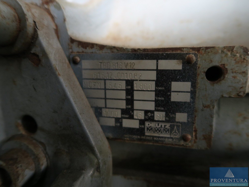 Deniz dizel DEUTZ MWM tipi TBD 616 V12, motor numarası 616.12.001082, MCFN 545KW 1800 1/d. hızda, sistem değişikliği nedeniyle çalışmadan kaldırıldı, gerekirse B/h sayacı okuması hâlâ belirlenebiliyor