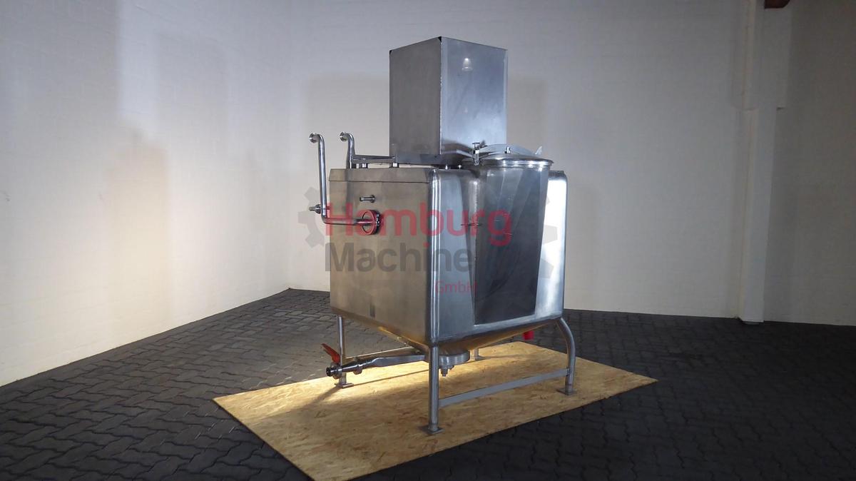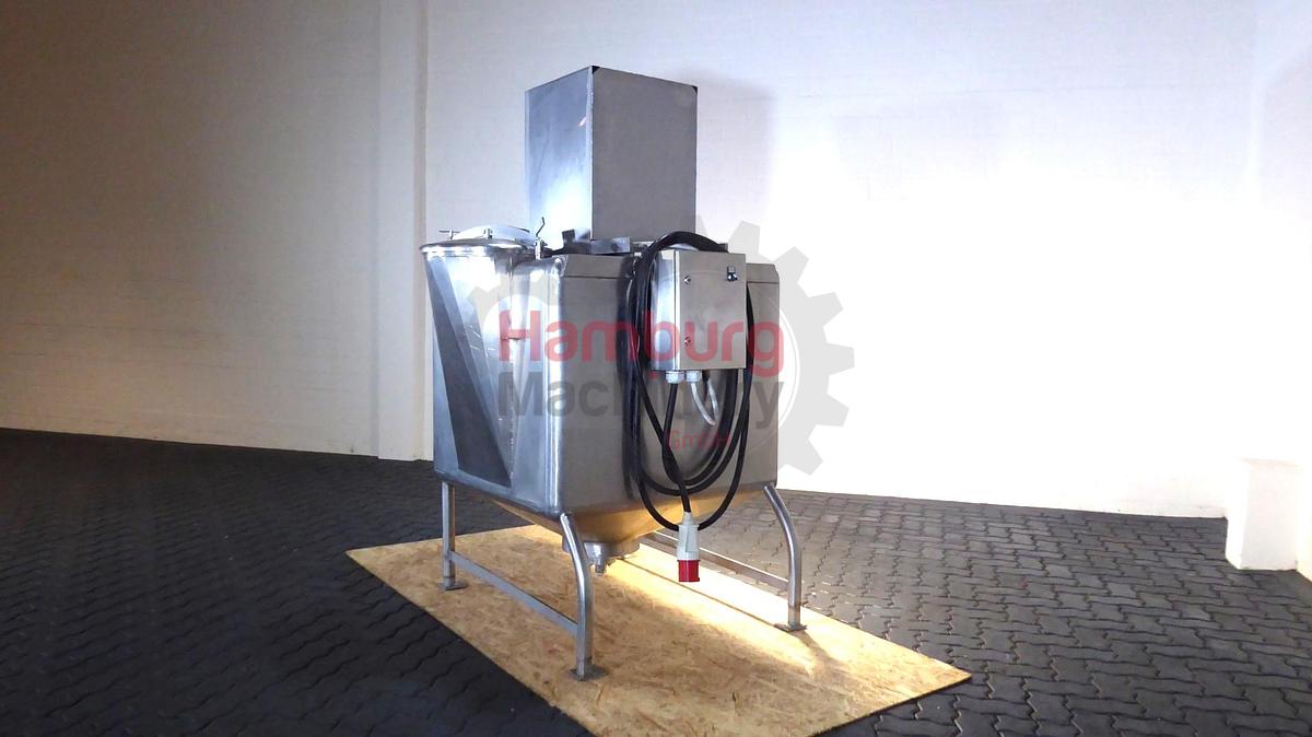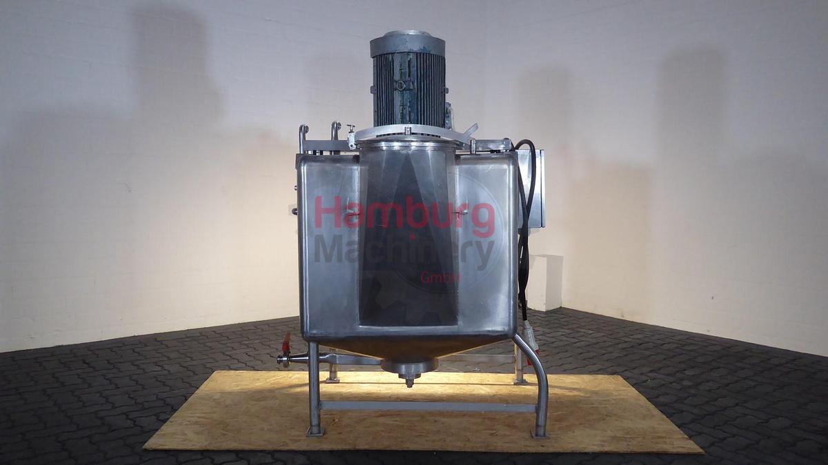 APV Crepaco Liquiverter / liquifier for dissolving and dispersing any dairy and food product. This unit is designed to mix, disperse, dissolve, suspend or hydrate solids and liquids or oils and fats with liquids. Volume of the tank: ± 750 liter. Motor (18,5 kW - 1.470 rpm) with motorcover on the top with direct connected 1:1 right-angle drive for controlling the high speed impellor in the bottom, which is creating a strong Vortex which reduces cycle times to a matter of minutes. Stainless steel construction with 4x legs. Round manhole on the top. 2x spray balls for CIP cleaning. Oufeed on the side with a manual butterfly valve. Inside dimensions: 95 x 95 x 80 cm. Stainless steel control panel with start/stop button and a Solcon RVS-AX reduced voltage starter., Type of Machine: Powder dissolver, Volume: ± 750 liter, Capacity: up to 15.000 ltr per hour, depending on product and system layout., Double jacketed: No, Insulation: No, Type of agitator: High speed impellor in the bottom of the tank, Motor of agitator: 18,5 kW - 380 V - 1.470 rpm - 37 A, CIP Spray bowls: Yes, Manhole: Yes, Number of feet: 4x, Inside dimensions: 95 x 95 x 80 cm, Total dimensions: 140 x 135 x 210 cm