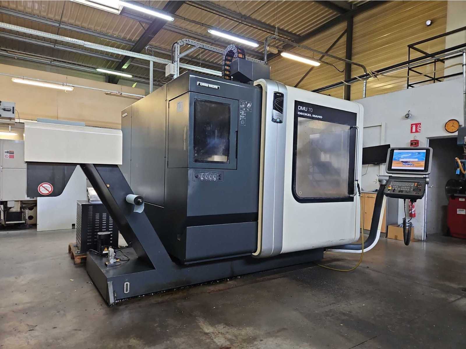 x-travel: 1600 mmy-travel: 1250 mmz-travel: 1600 mmB-axis (table): 360.000 x 0,001° degmilling-head swivable +/-: (HV) 360.000° degpallet size:: 1000 x 800 mmtable load: 3000 kgtool taper: SK 50-B spindle turning speed range: max. 8000 U/mintransmission ratio: 2 spindle drive: (100/40 % ED) 37/50 kWfeeds x/y/z -stepless: 30000 mm/mintotal power requirement: 75 kVAweight of the machine ca.: tdimensions of the machine ca.: 11555 x 7998 x 5050 mmUniversal machining center 5 axes simultaneouslyOriginal purchase price: EUR 1.295.000,-First machine installation in September 2011.A geometry measurement report (dated 30. August 2025) is available.Equipment:CNC-control Siemens 840D Solution Line2-station pallet changer330-position tool changer (max. tool length 600 mm)Tool taper cleaning systemSpecial cabinCoolant tank 3.300 liters, pump pressure 4 bar/50 bar (Q1/Q2)Chip conveyorWorkpiece m ...
