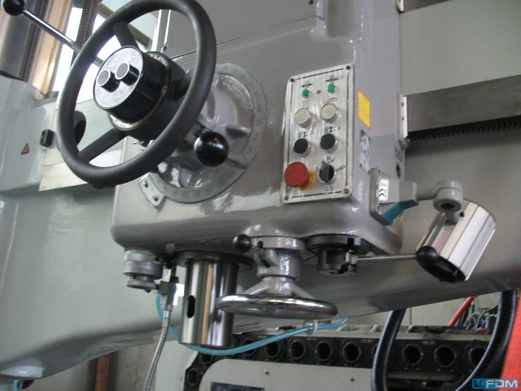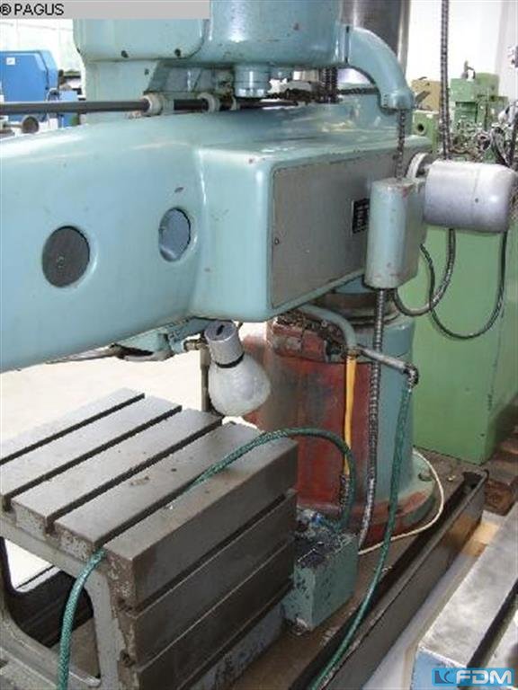 bore capacity in steel (diameter):63 mmarm length:2000 mmworkpiece height max.:135 mmspindle stroke:400 mmreus:16 Stufentable-size:630 x 800 mmtool taper:MK 5 speeds:20 - 1600 U/minspindle feeds::0,04- 32 mm/Uwork table::800 x 630 x 550 mmtotal power requirement:5,5 kWweight of the machine ca.:6200 kgdimensions of the machine ca.:3100 x 1250 x 2500 mmYear:ca. 1990