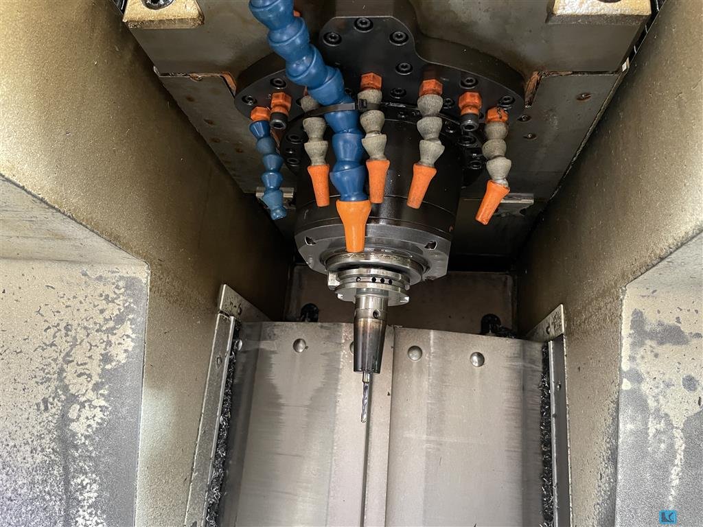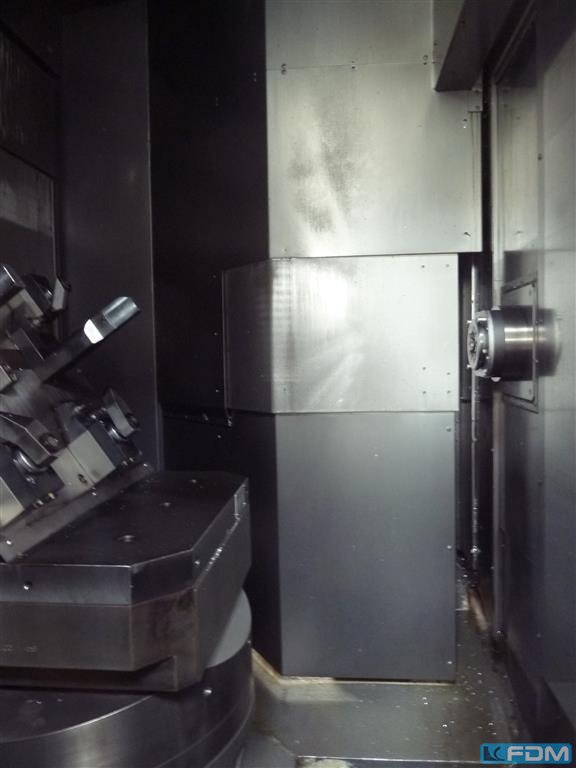 x-travel:800/945 mmy-travel:800 mmz-travel:600 mmspindle motor:27 kWspindle turning speed range:10 - 8000 U/minspindle taper ISO:40 c-axis:360.000 x 0,001 table load capacity:600 kgtable clamping surface::800 630 mmtotal power requirement:55 kWweight of the machine ca.:16 tMachine with Heidenhain iTNC 530 CNC control for 5 axis- pendulum operation with turn- swivil table left and fixed table right- tool changer for 30 tools- coolant device, chip conveyor- complete splash housing