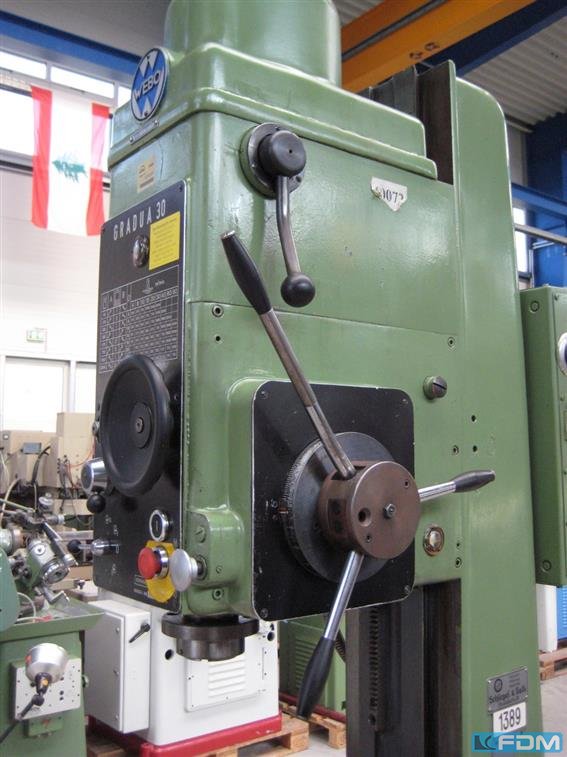 bore capacity in steel (diameter):5 - 30 mmx-travel:450 mmy-travel:380 mmtotal power requirement:1,4 / 2,2 kWweight of the machine ca.:1.100 kgdimensions of the machine ca.:1.000 x 1.400 x 2.900 mmgear box:85 - 2.000 U/minspindle diameter:72 mmbore depth:700 mmthroat:300 mmspindle taper MT:3 T-slots:3 x 16/25 mmtable-size:700 x 300 mmspindle turning speed range:85/170/250/355/475/710/1000/2000 U/minmotor speeds::705/1425 Year:ca. 1975