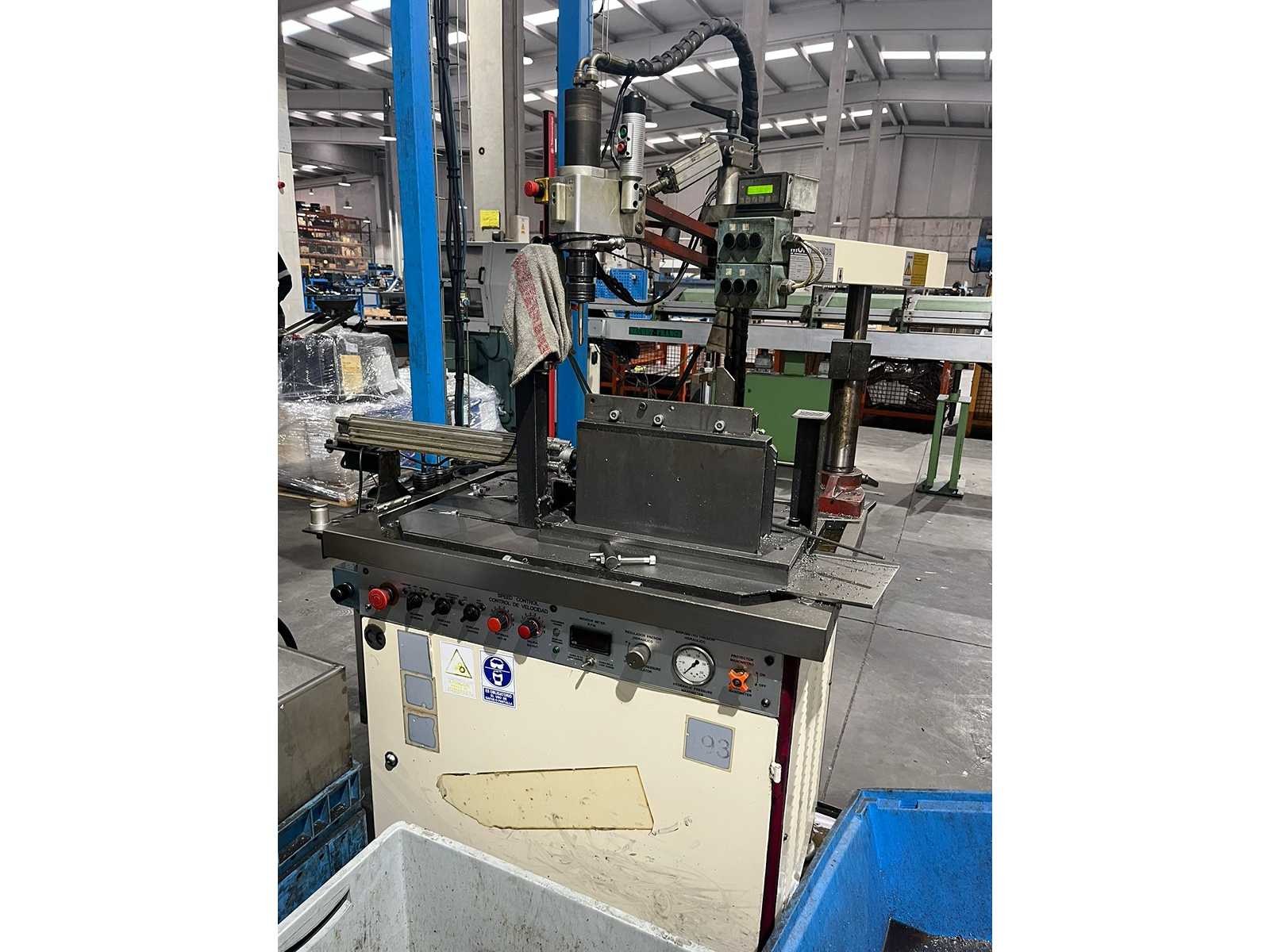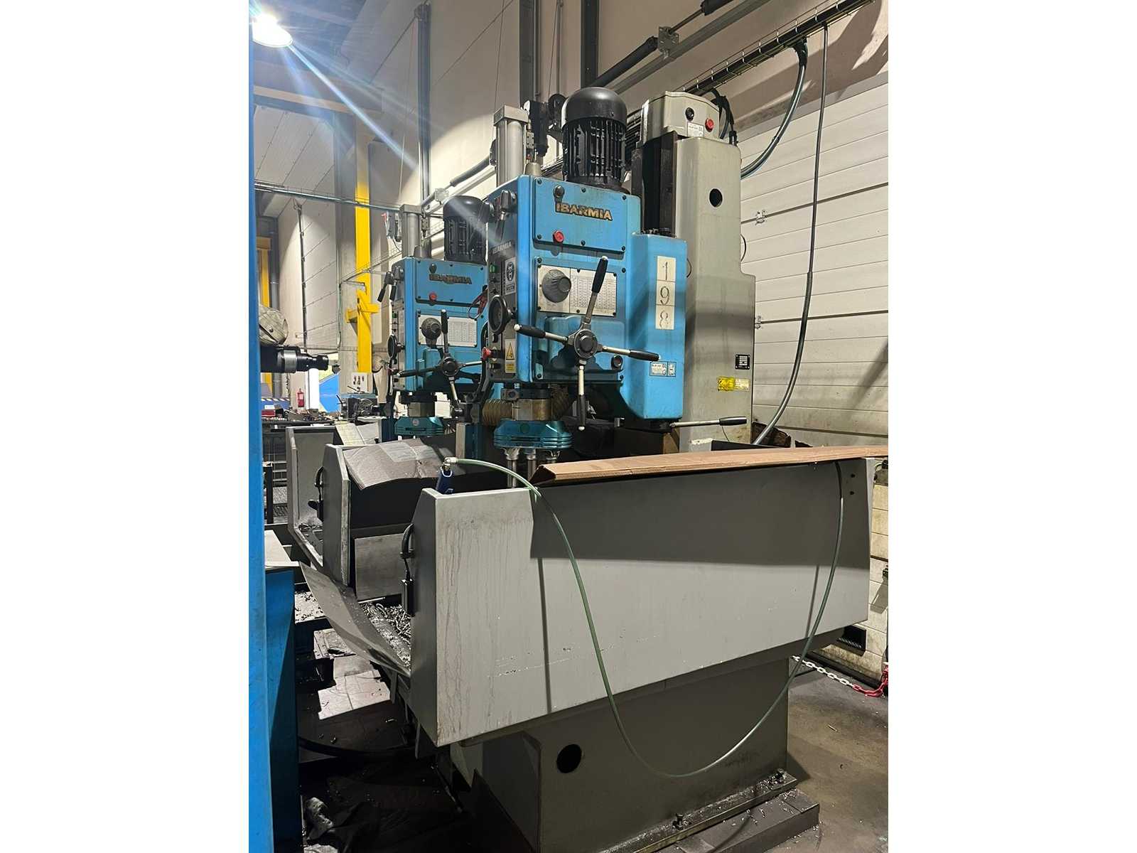 IBARMIA double drilling machine model BP-50. Year of manufacture 2005. Serial number 043285. Equipped with two drilling heads for simultaneous operations. Pneumatic workpiece clamping system. Integrated cooling system (coolant). Motor power 4.2 kW. Working speeds 750 / 1500 rpm. Electrical connection 380 V / 50 Hz. Acoustic level 78 dB(A). Machine with CE marking. Ideal configuration for series production and repetitive operations. Robust industrial construction on common base. The dimensions are approximate. Auction-ID: A7-44864-2