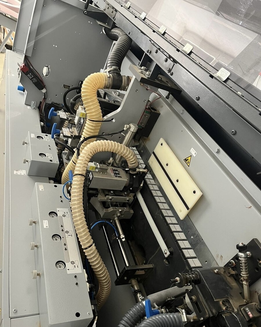 Edge banding machine Type: Sprint 1317 Manufacturer: Holz-Her Year: 2006 Edge Control with 18.5" 16:9 color touch screen rotary control panel, memory for programs, motorized adjustment of the pressure beam, feed using a transport chain, feed 8–18 m/min extendable support surface for workpieces Trimming milling unit 1961, diamond cutting cutter in right- and left-hand operation, automatic adjustment to the height of the workpiece Edge feeding 1903 Pre-cutting up to 3 x 45 mm (depending on the material) Adhesive system 1905 Multi-System automatic adjustment of the glue height using the touch nozzle, Pressure regulator for adjusting cartridge pressure, the possibility of using PUR adhesives, pressure device 1913 MOT, 1. cylinder driven Trimming unit 1918 with pneumatic adjustment Pneumatic cut-off saw rotating Multifunctional unit 1824 MOT 4 with a multifunctional ...