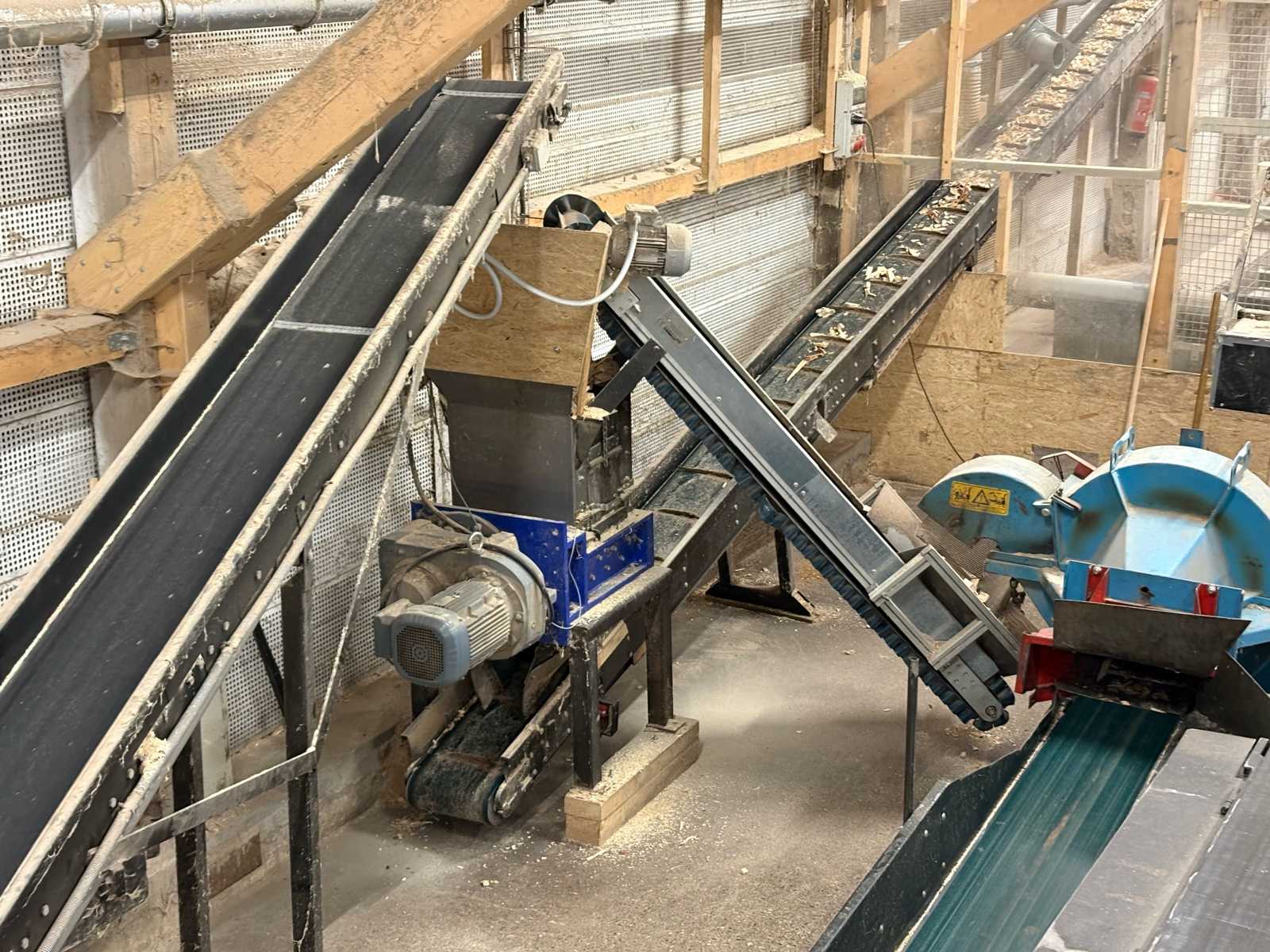 Strojcad conveyor system – approx. 14 m – built in 2000 Suitable for wood, residue or material handling 2-shaft shredder – 7.5 kW – industrial version Ideal for reducing the volume of residual materials. Laitmet Screw Machine / Shredder – 22 Kw Suitable for wood scraps or industrial residue processing. Strojcad conveyor belt – 6 m – 50 cm belt width Auction-ID: 04A-N1P-2