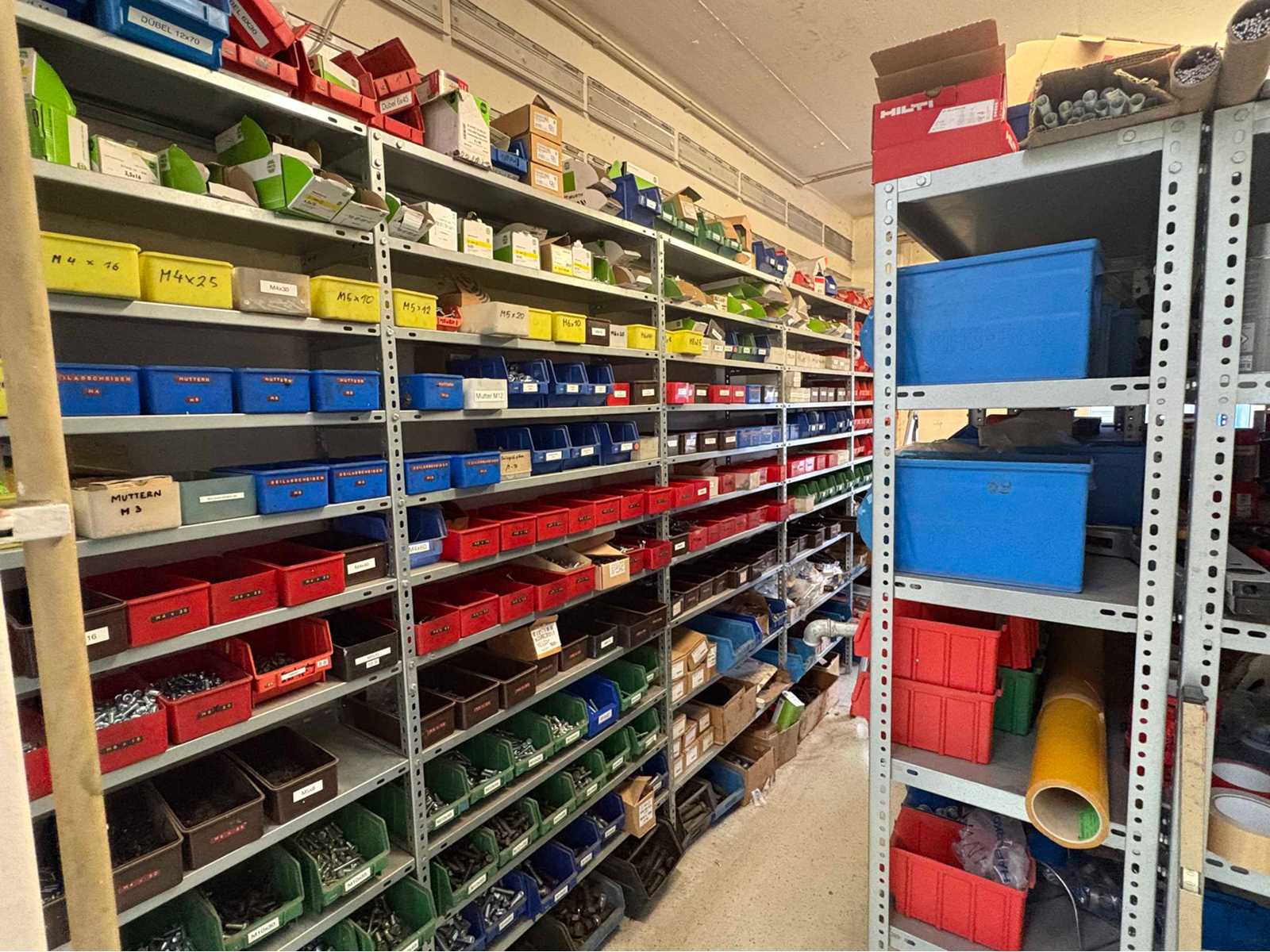 Contents of small parts storage room to include all shelving, small parts bins and contents (see photos) Auction-ID: A1-45187-234