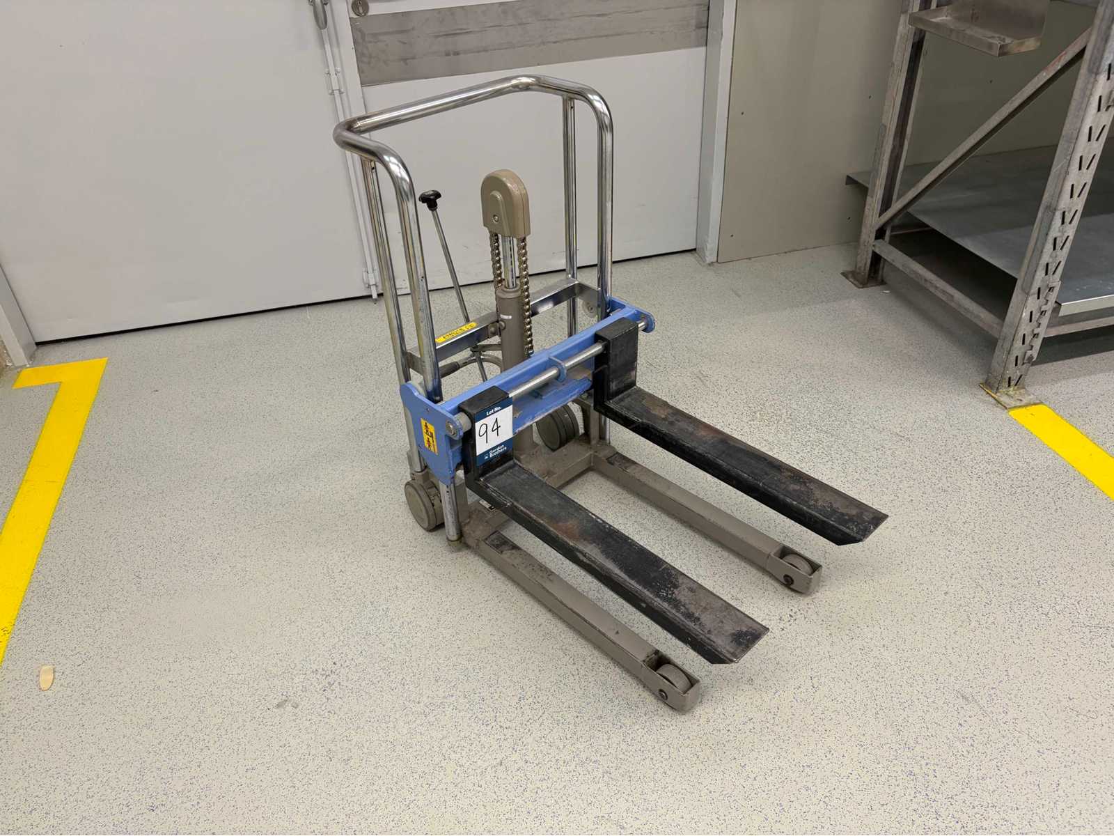Hydraulic pedestrian manual stacker truck. 400kg capacity, 700mm lift height. S/No 371712. No asset number. Auction-ID: A1-45187-94