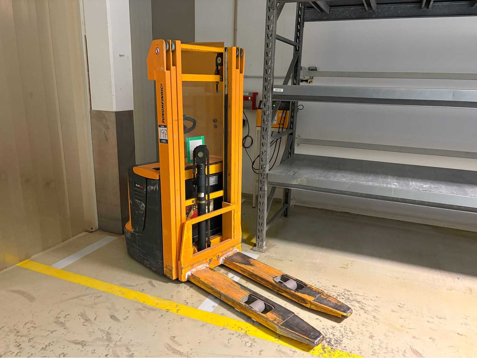 Electric pedestrian stacker truck, 1600kg capacity, S/No 90120460, Year 2004, including charger, ANR 1640 Auction-ID: A1-45187-197