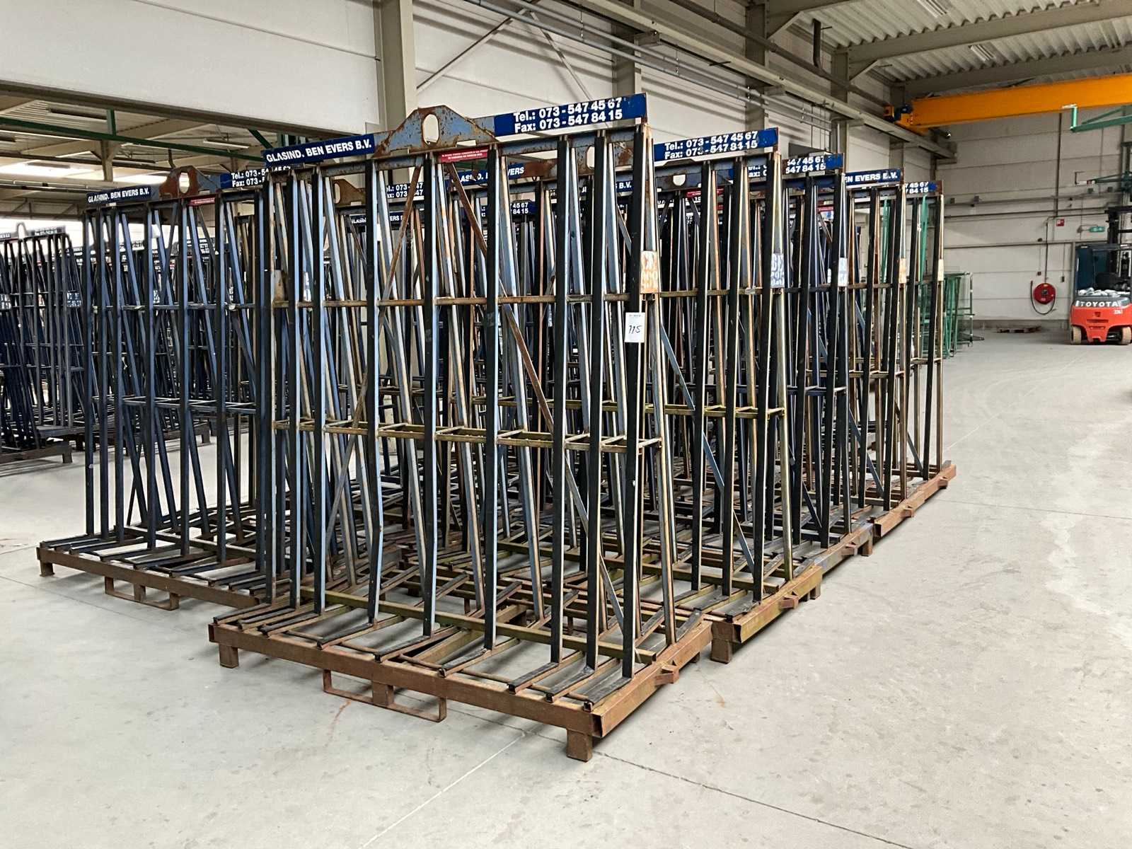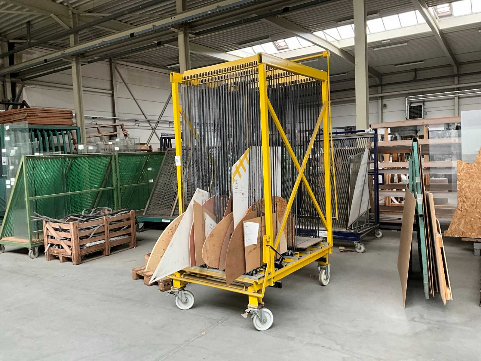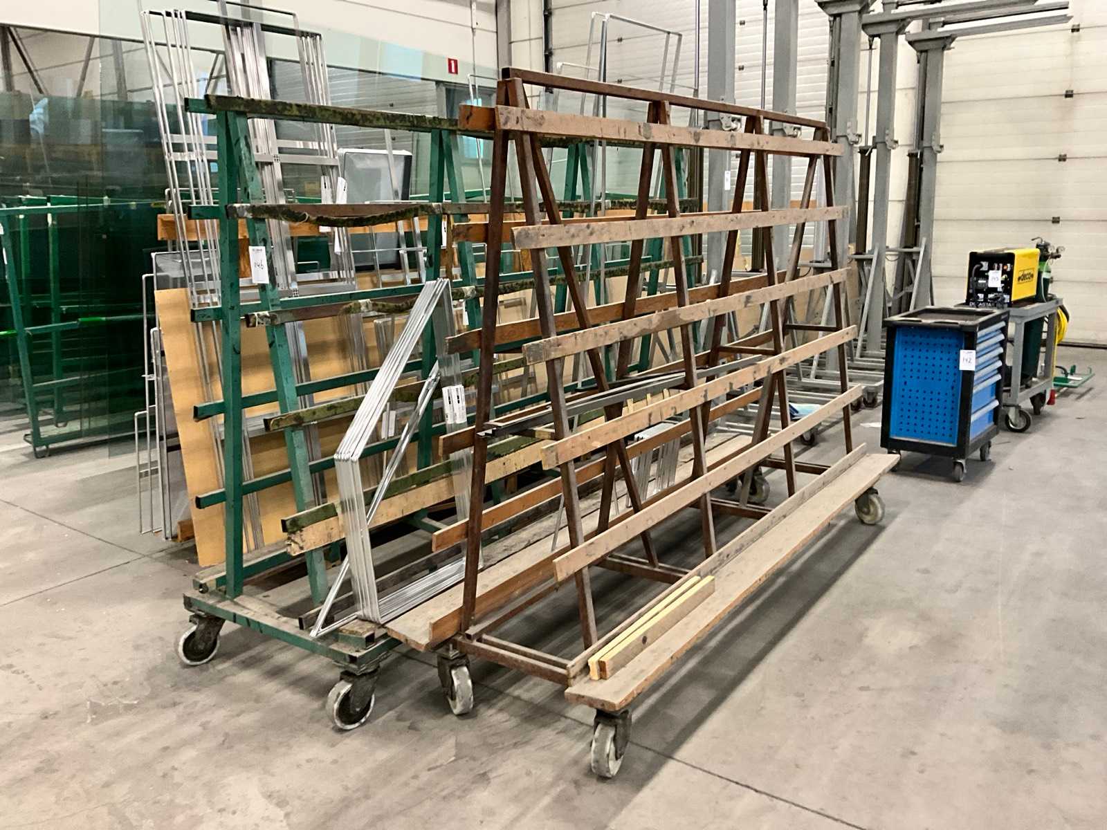 Steel frames equipped with 2 fixed wheels and 2 swivel wheels. Threaded rods with rubber with 15 mm spacing, contents included Auction-ID: A1-44279-114
