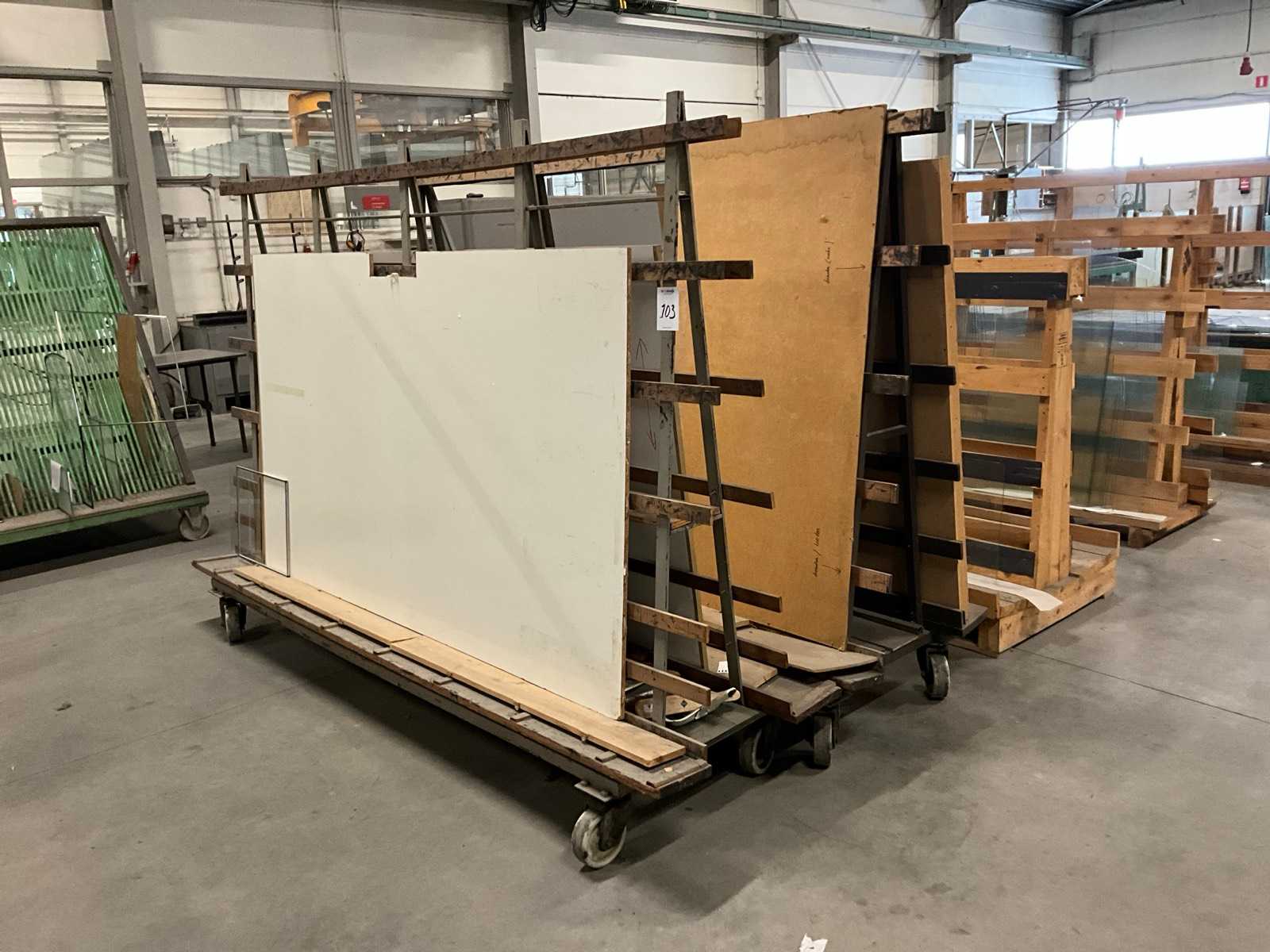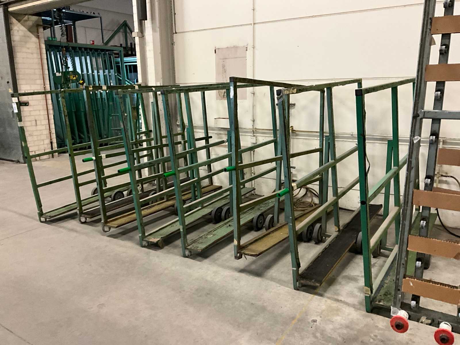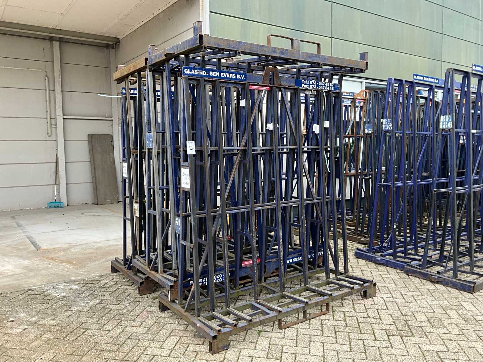 Steel frames equipped with 2 fixed wheels and 2 swivel wheels. Threaded rods with rubber with 15 mm spacing, contents included Auction-ID: A1-44279-114