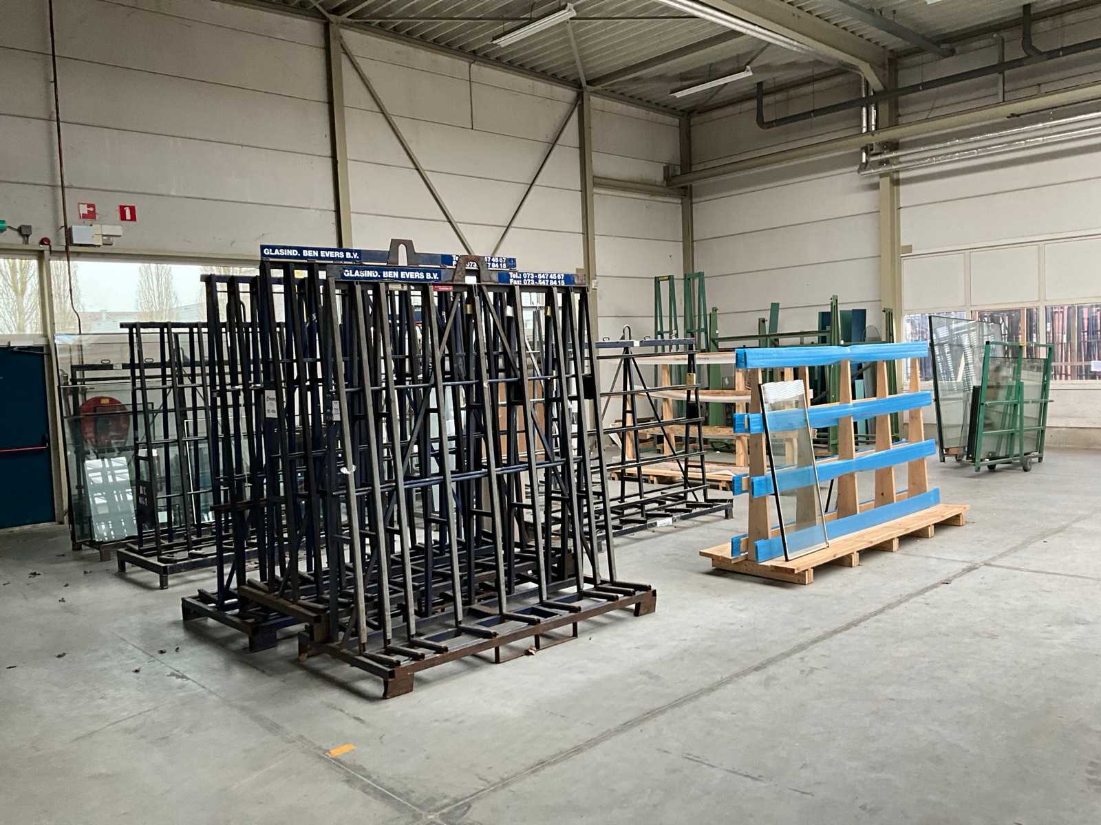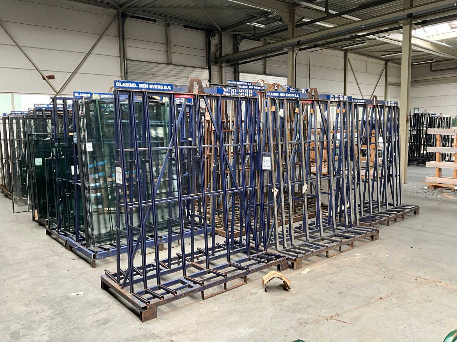 Steel frame with 2 wheels, with contents various types of glass Auction-ID: A1-44279-164